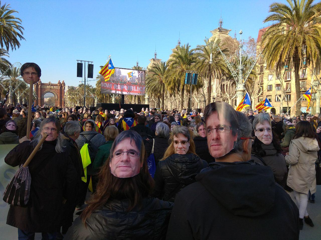 La idea que expuse en el otro párrafo cuajó en la mente de los concentrados fuera del parque de la Ciutadella, tanto que rompieron su habitual quietud reivindicativa e intentaron irrumpir en el recinto. Lo curioso es que, a diferencia del mal llamado asedio del Parlament de junio de 2011, no tenían aire de forzar nada con violencia, lo que hicieron al violentar la puerta de la Ciutadella ataviados con máscaras de Puigdemont en plan invasión de los ultracuerpos. En realidad la jornada se presta a muchas lecturas.