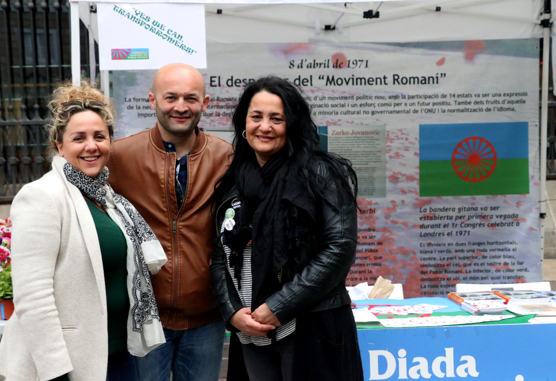Paqui Perona (dreta) junt a Maria Rubia, de l’Associació Intercultural Nakeramos, i Ricard Valentí, de l’Associació de Joves Gitanos de Gràcia / MERITXELL RIGOL