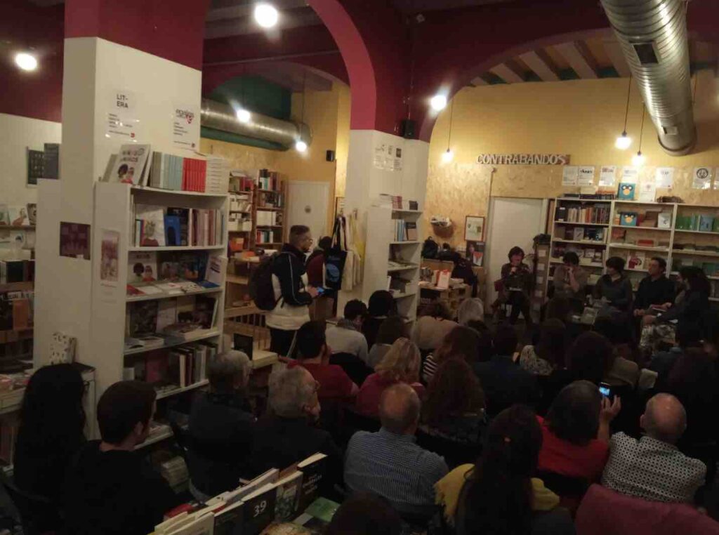 La librería se llenó de personas interesadas en el derecho a la vivienda y las luchas que lo han intentado garantizar los últimos años en la ciudad, pero también de activistas que en la actualidad lo defienden (con diferentes métodos).