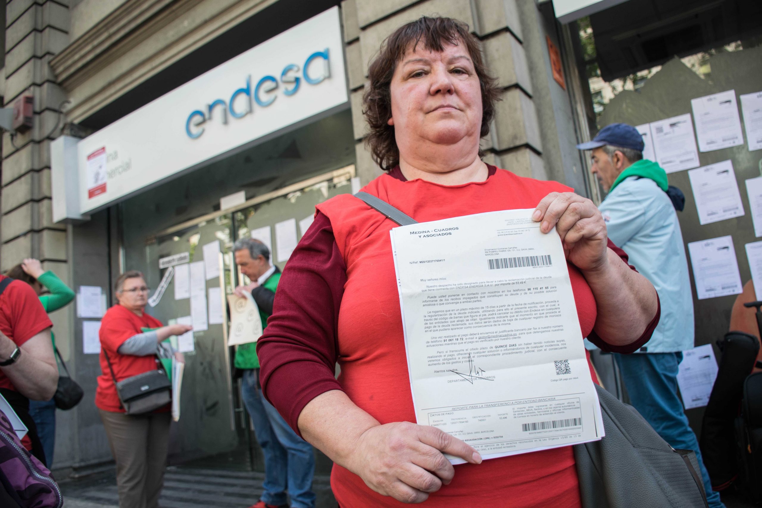 “En tres mesos el despatx d’advocats Medina Cuadros m’ha trucat 138 vegades, a deshora, l’última vegada per dir-me que tenia 48 hores per pagar la factura dels subministraments”. Qui parla és l’Encarna, que denuncia que pateix assetjament per part d’aquest bufet a causa de l’impagament de 600 euros de subministraments. Ella cobra un subsidi de 430 euros mensuals. Mentre relata la seva història sosté a la mà una carta, també de Medina Cuadros. “Quan vaig bloquejar el seu número de telèfon van començar a enviar-me cartes d’assetjament i em truquen des de diferents números”, explica l’Encarna. Medina Cuadros, a la seva web, asseguren que disposen de “tots els mitjans materials necessaris per a l’activitat del recobrament”.