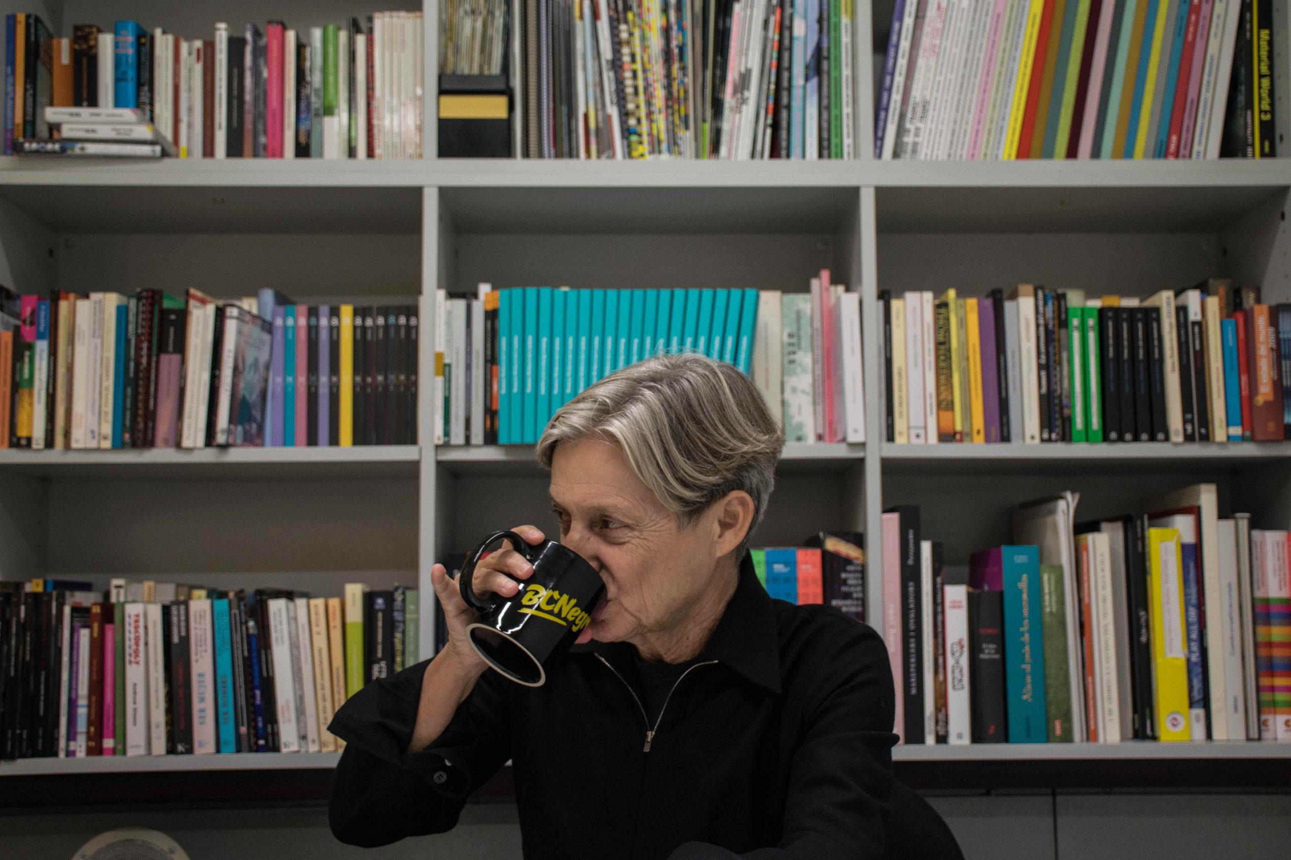 “Gracias por venir a mi charla”. Judith Butler (Cleveland, 1958) predica con el ejemplo: los cuidados no están solo en el mundo de las ideas, sobre su atril desde hace casi tres décadas, también los pone en práctica fuera de la tarima. La americana, que abraza un té como si éste tuviera propiedades milagrosas (afrontará una tarde maratoniana de conversaciones con la prensa), hace ni veinticuatro horas que ha agitado al auditorio del Centre de Cultura Contemporánea de Barcelona (CCCB) –lleno hasta los topes– y su teatro, con casi 300 jóvenes haciéndole preguntas, pero es ella la que despacha cumplidos.