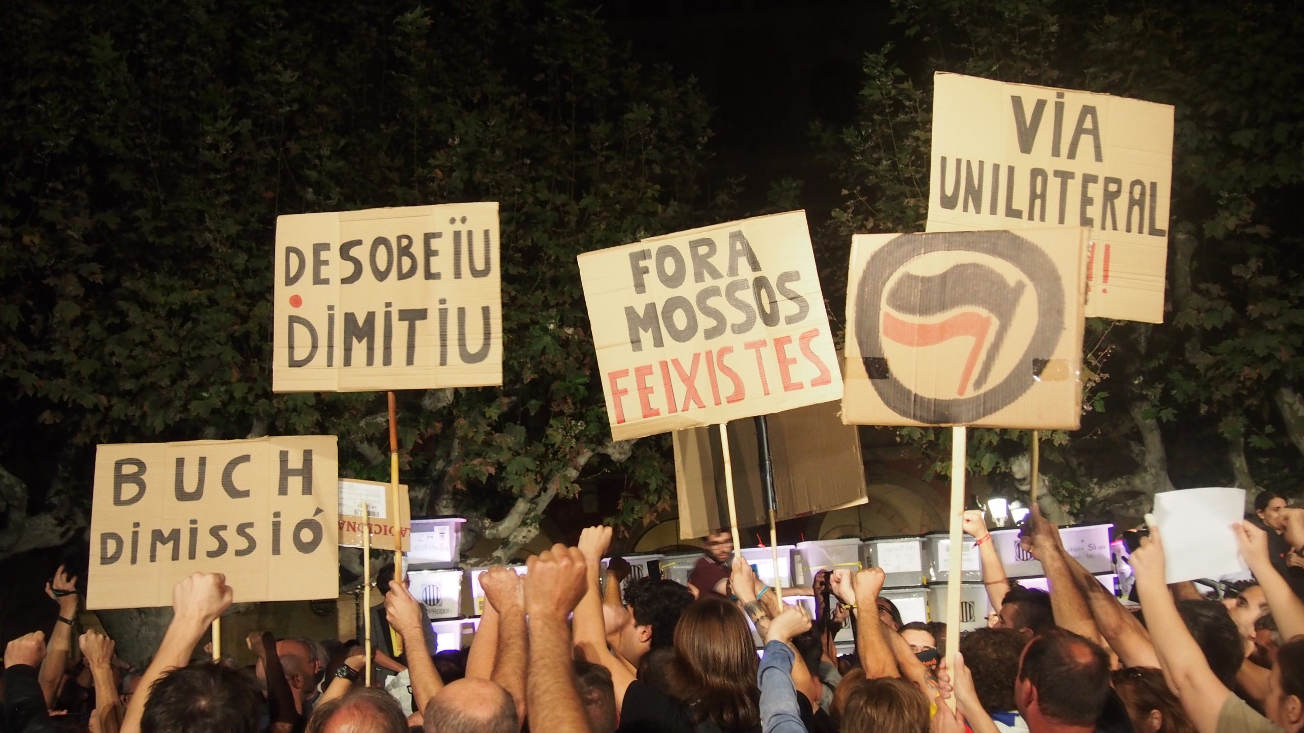 Lo que sucedió el lunes por la noche, durante la manifestación que terminó a las puertas del Parlamento, está excelentemente descrito en esta crónica. Los Mossos volvían a ser los Mossos: un aliado del estatus quo. Eran por otro lado lo que siempre habían sido, el brazo armado de la institución y la única instancia con capacidad de aplicar el monopolio legítimo de la violencia que se le supone al Estado. Pero aún quedaban en el imaginario las rosas en los furgones antidisturbios tras los atentados de Barcelona y Cambrils, en agosto del año pasado, y el proceder tranquilo – en comparación a la actuación de la Guardia Civil – de aquel uno de octubre de ahora hacía un año.
