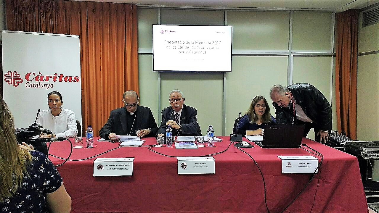 En la presentación de la memoria han participado Juan José Omella, arzobispo de la conferencia episcopal tarraconense. Francisco Roig, presidente de Cáritas Cataluña, Anna Roig, de la comisión de comunicación y Raquel Carrión, representante de la Comisión de Acción Social de Cáritas Catalunya.