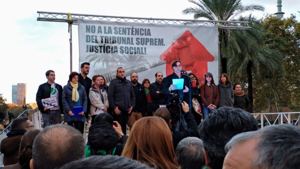 Camil Ros, secretario general de UGT de Catalunya en referencia a las últimas decisiones judiciales ha dicho que «llueve sobre mojado». Destacó que unos golpes el Tribunal Constitucional y otros el Supremo, no paran de recortar derechos sociales. «Lo hicieron con la pobreza energética, casualmente a favor de las eléctricas», ha dicho. Según manifestó, la primera sentencia del Supremo era justa socialmente, pero ha sido enmendada tras las presiones ejercidas por una minoría poderosa. Por ello instó a las entidades a «protestar democráticamente tantas veces como haga falta hasta que se modifique esta ley», afirmó, en referencia a la norma hipotecaria.