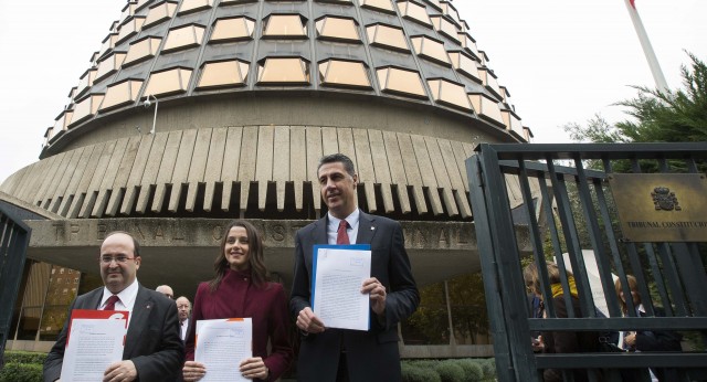 La coalición del 155 se cocinó en una fotografía. En 2015, Iceta (PSC), Albiol (PP) e Inés Arrimadas (C ‘s) rechazaban juntos ante el Tribunal Constitucional la enésima resolución soberanista del Parlament de Catalunya. Esta imagen escenifica la entrada de los socialistas en el bloque unionista, abandonando su histórico posicionamiento flexible ante la cuestión nacional. El PSC pasaba al ataque.