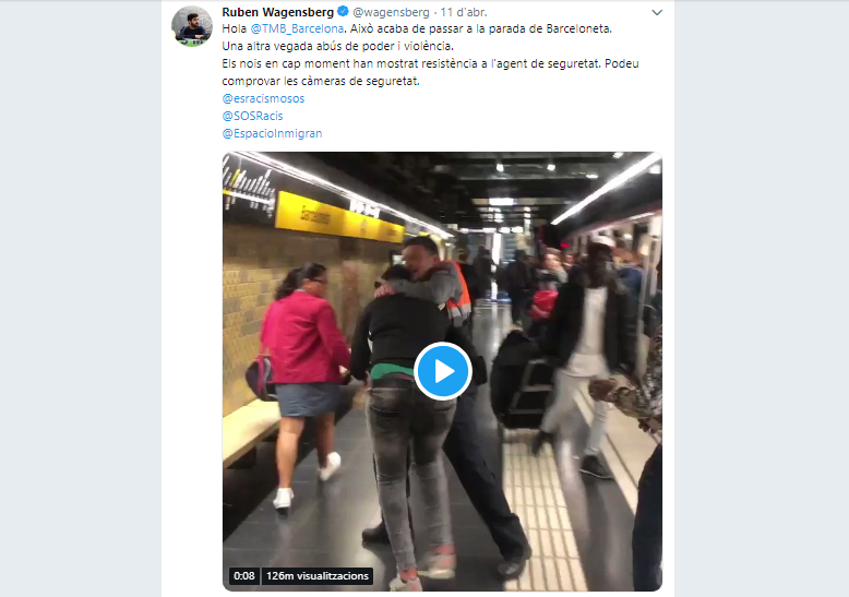 Els nois en cap moment han mostrat resistència a l’agent de seguretat. Podeu comprovar les càmeras de seguretat. @esracismosos @SOSRacis @EspacioInmigran pic.twitter.com/fbEitcDai8— Ruben Wagensberg (@wagensberg) 11 d’abril de 2019