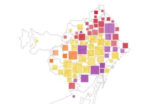 Barcelona en Comú ha ganado en 6 de los 10 distritos de la ciudad. Esquerra lo ha hecho en 30 de los 37 barrios. Pero los mapas electorales que muestran el partido ganador por zona, a menudo esconden una realidad más compleja. Mostramos dos mapas que ajustan sus medidas a la población y sus colores al porcentaje de votos para ver cómo se reparten los partidos en Barcelona