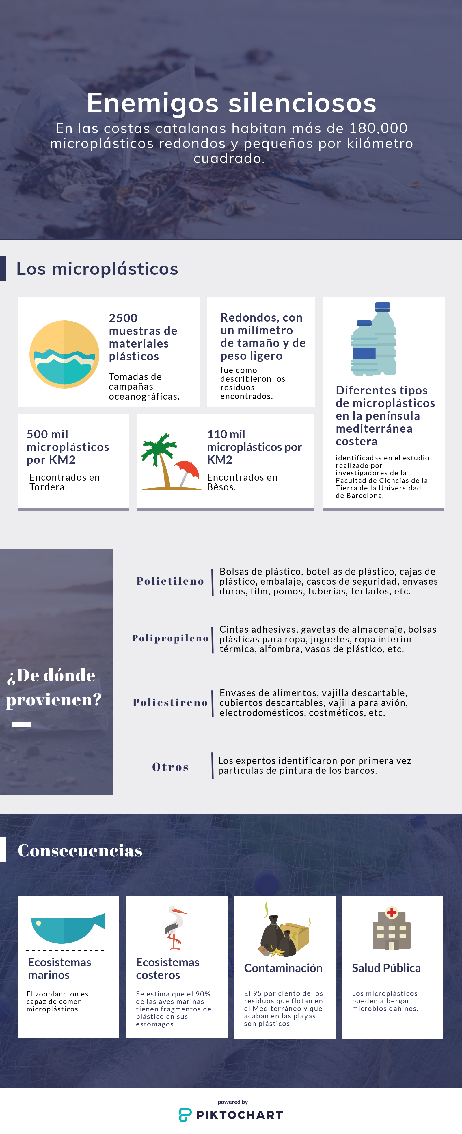 Según la organización WWF, el Mediterráneo -que acumula el 1% del agua mundial- recibe el 7% de los microplásticos globales. Ahora, un grupo de investigadores de la Facultad de Ciencias de la Tierra de la Universidad de Barcelona ha logrado identificar los tipos de estos residuos que existen en las costas de Catalunya, la región de Murcia y Almería.