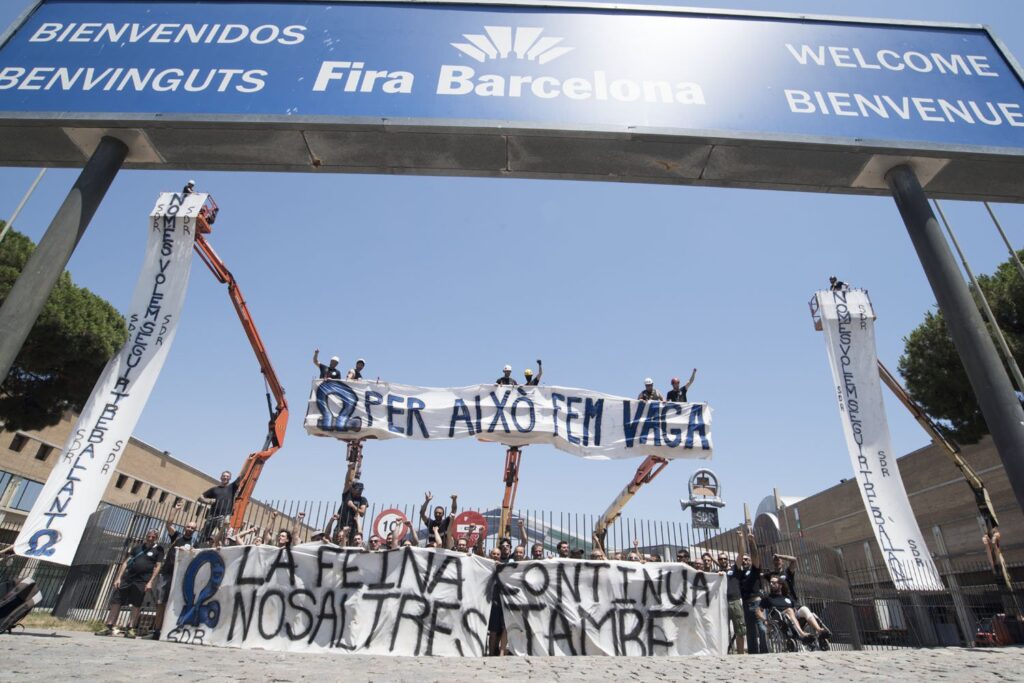 Actualmente el titular de la empresa que opera en Barcelona es la Unión Temporal de Empresas (UTE) Rigging. Como ha terminado la concesión, La Fira ha hecho una nueva convocatoria. Y en el pliego de condiciones no hay ninguna referencia a que los trabajadores de la UTE han conseguido, después de mucho tiempo de acción sindical, tener un convenio colectivo que les garantiza unas condiciones de trabajo dignas, que se subrogarán a la nueva empresa que gane la subasta, ni hay tampoco ningún punto que suponga el mantenimiento de la situación laboral alcanzada.