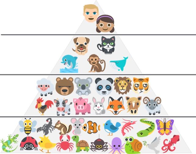 A més, les diferències sobre la nostra consideració moral entre els animals domesticats i en llibertat és considerable i igualment arbitrària. D’aquesta manera, les desenvolupadores de videojocs blinden contra certs abusos els animals que es troben a la part alta de la piràmide -donat el seu estatus d’utilitat per als humans- mentre que els altres són, majoritàriament, meres màquines expenedores de carn, pell, plomes, banyes, escates, ous, etc., la violència contra els quals no és que necessiti cap tipus de justificació, sinó que es premia.