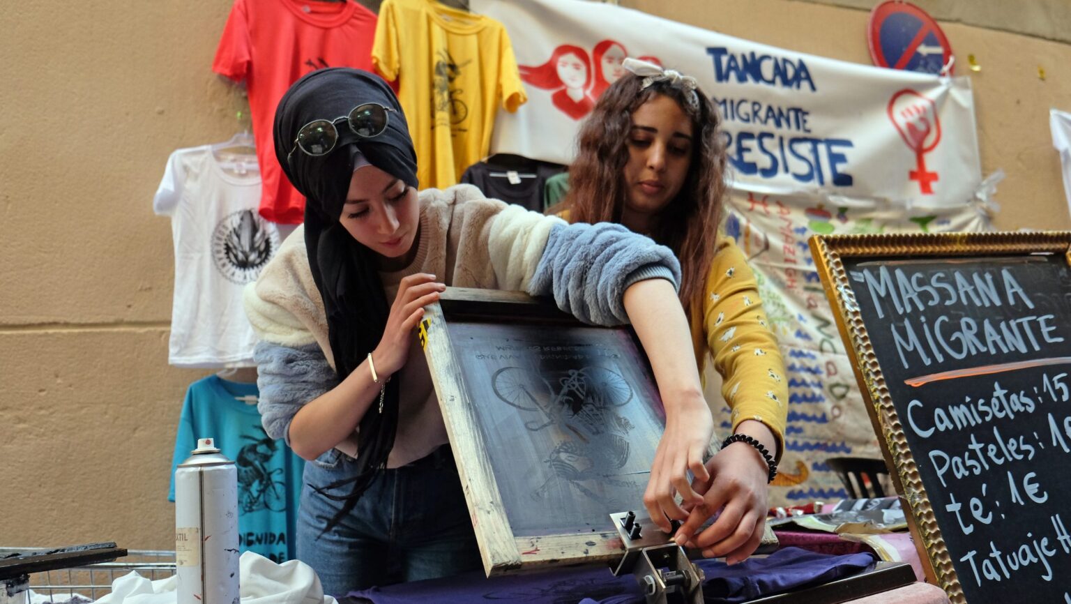 Iman i Aouatif, dos joves germanes marroquines que van arribar a Barcelona fa 9 anys, donen suport també a les persones de la Tancada. Els animen a participar en activitats del barri del Raval i en les manifestacions pels drets humans.