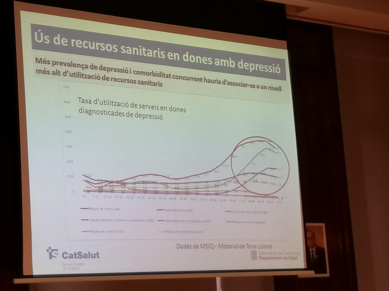 Como parte de los fármacos, donde las mujeres están mucho más medicadas, hay también saber qué uso se hace de los servicios de salud, Pontes explicó que al mirar la tasa de salud mental ambulatoria, se ve que los hombres no hacen un uso menor de estos a la vez que “hay 2-3 veces más mujeres con diagnóstico y el consumo de antidepresivos es hasta 3-4 veces más”. “Esto es inesperado pero quizás es que se atienden en otros tipos de dispositivos, ¿no? Pues si miramos qué grado de salud tienen en general las mujeres que tienen depresión respecto a los hombres que tienen depresión… Si hacemos un análisis de comorbilidad vemos que los mujeres con depresión tienen una carga de comorbilidad mucho mayor que la de los hombres”, sigue Pontes. Entonces plantea que “deberíamos esperar que las mujeres hicieran un consumo de recursos sanitarios mucho mayor que los hombres”.