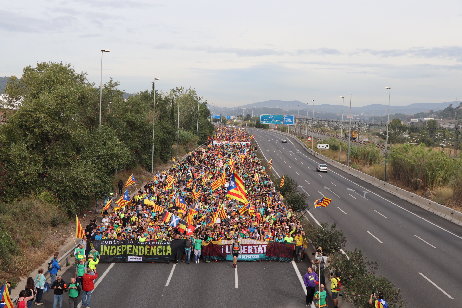 Aquesta Marxa, que venia de Tàrrega, s’ha ajuntat amb la que sortia de Tarragona a l’alçada de Martorell. Es tracta de la marxa de Ponent, que ha passat pel Baix Llobregat, totes elles zones en les que els partits no independentistes tenen més força. No es pas l’anomenada ‘Catalunya convençuda’ la que camina sobre aquestes carreteres i que arriba a Barcelona per la Diagonal. Però han omplert les vies.