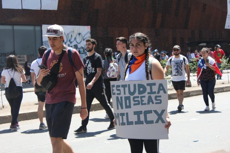 El gobierno de Sebastián Piñera decidió aplacar los llamados de los adolescentes a la evasión masiva con mano dura. Envió a la policía a intervenir a las estaciones afectadas, lo que desató una ola de protestas, saqueos y altercados mucho mayor: 118 estaciones de las 136 que conforman la red de metro quedaron dañadas, 25 de ellas incendiadas. La noche del viernes 18 de octubre, casi de madrugada, el mandatario chileno decidió decretar el Estado de Emergencia, desplegar los militares en la calle e imponer un toque de queda durante una semana. La respuesta ciudadana, articulada sin líderes ni portavoces, fue, entonces, masiva: “Ahora ni cagando pueden decir que son sólo los estudiantes quienes protestan”, decía una de las jóvenes que participaba en uno de los tantos cacerolazos que se autoconvocaron en las calles durante todo el fin de semana.
