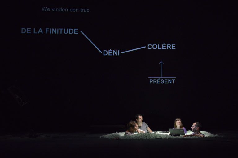 Uno de sus autores, Halory Goerger, actuaba también en septiembre en las dos funciones y nos explicó la génesis y evolución de esta pieza de teatro no identificada empezada en 2012. Y, a partir de aquí, el espigado y escurridizo Goerger nos habló sintéticamente de su trayectoria inicialmente individual, después en la cooperativa de Lille L’Amicale de Production y, actualmente, con su propia compañía Bravo Zoulou. En búsqueda de un lenguaje que parezca nacido en el mismo instante.