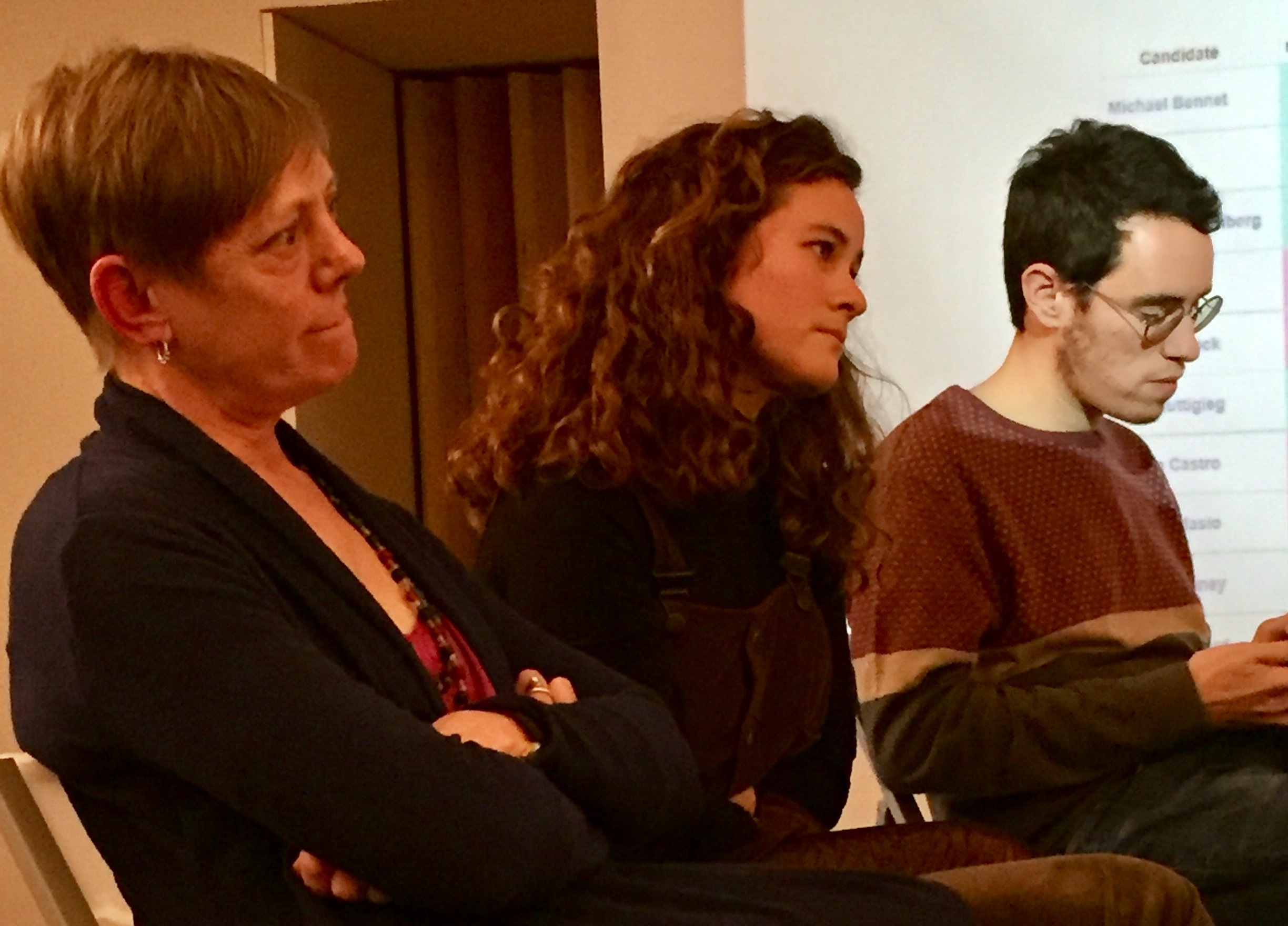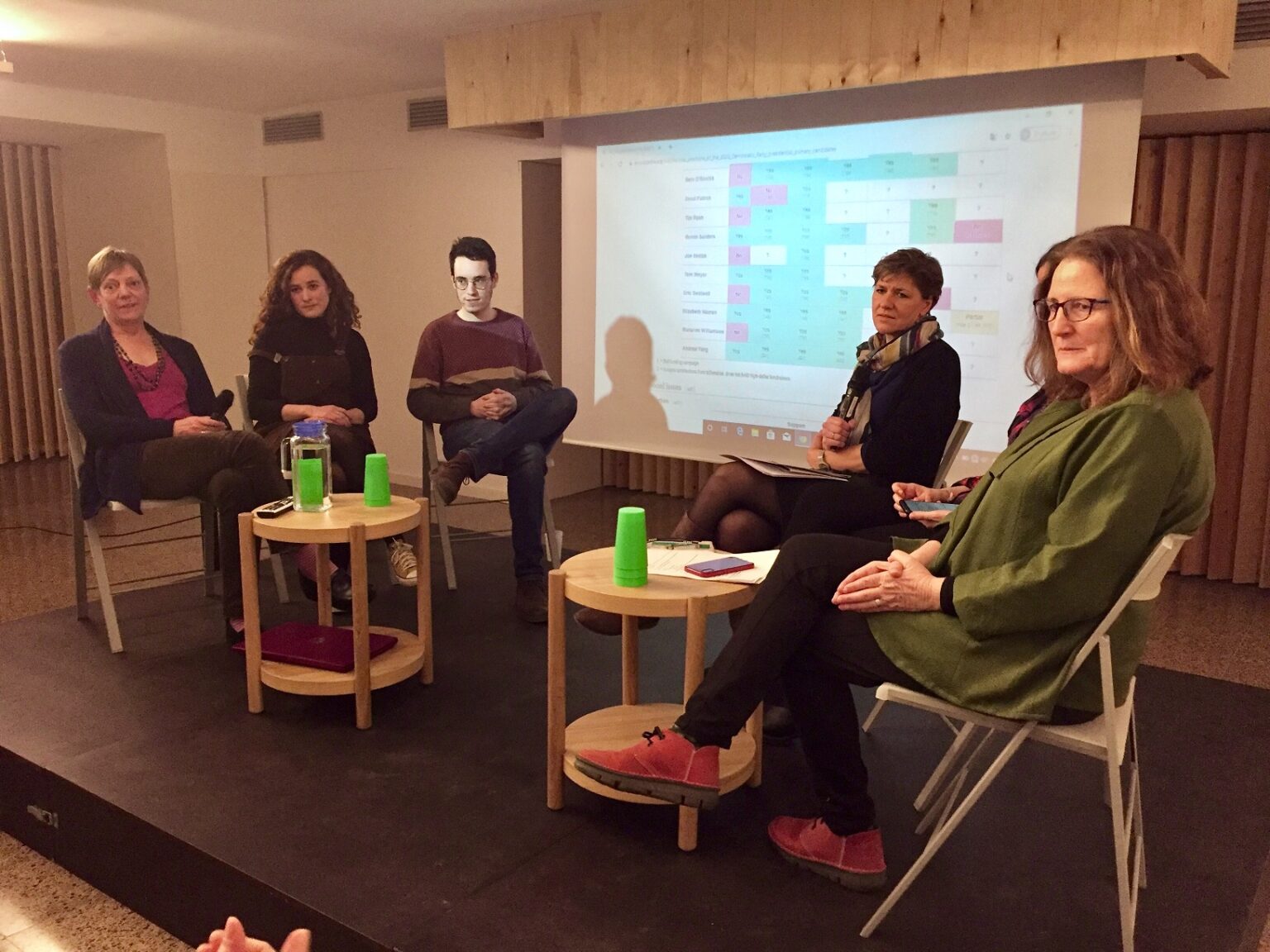 Tras el pase del documental, se inició un animado debate con cinco ponentes que, siguiendo la tónica del acto, eran mujeres de ideología progresista: representando a la asociación Women’s March Barcelona acudieron Rachel Mantiñán, Camila Osorio Van Issochot y Chelo Álvarez-Stehle. Y por parte de la organización Democrats Abroad Barcelona, estuvieron presentes Catherine Dexter y Annie Graul, su secretaria de Organización. Women’s March Barcelona es una entidad fundada hace tres años en la ciudad condal como fruto de las protestas masivas contra la designación de Donald Trump como presidente. “Creemos que Trump es el síntoma de algo más grande que no sólo existe en los Estados Unidos, sino en más países” -asegura Rachel Mantiñán- “Y por eso seguimos activos en Barcelona, organizando eventos, acciones, iniciativas y protestas respecto a hechos que suceden tanto en Estados Unidos como en el exterior”.