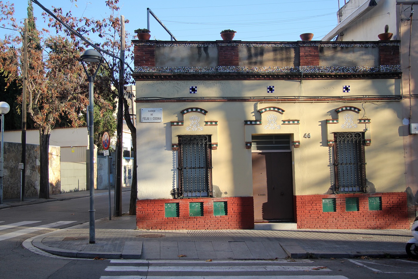 Feliu i Codina destaca por la abundancia de casitas modernistas, y lo mismo puede decirse del carrer d’Hedilla, uno de mis favoritos al ser poco transitado y rebosar de villitas, muchas de ellas con su función residencial suplantada por la empresarial.Es un milagro apreciarlo casi íntegro, como si la modernidad destructora no se hubiese percatado de este rincón tan especial hacia el passeig de Fabra i Puig, con el colindante Turó de la Peira, bien frondoso, y un trecho más bien anómalo desde donde puede admirarse el Carmel con sus imposibles alturas y su nueva iglesia de los años ochenta con forma de órgano, un monstruo siempre cerrado y sólo útil para tener una referencia en el horizonte.