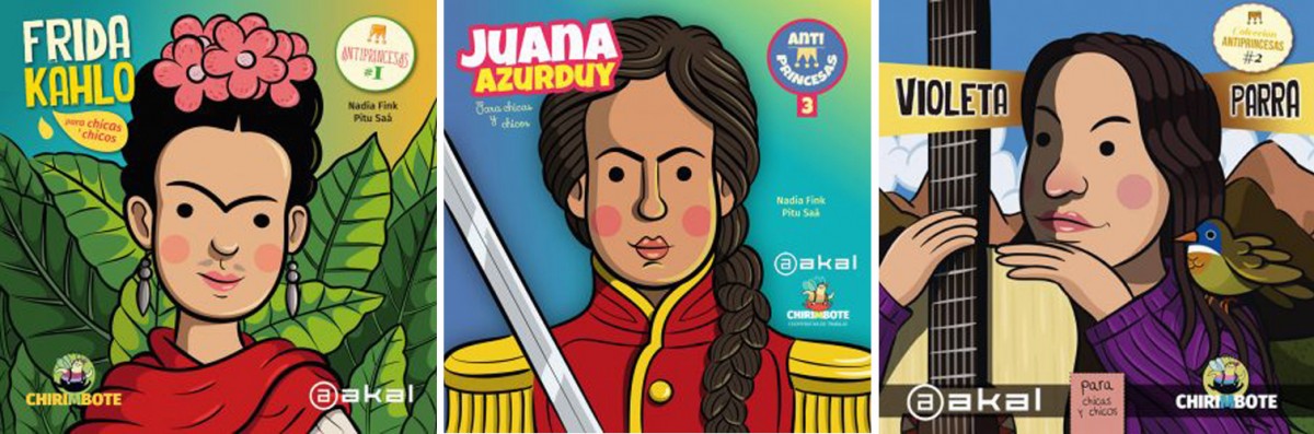 Una niña se encuentra una perra por la calle y la bautiza como Frida “porque es niña y tiene bigote”; acaba de leer la historia de Frida Kahlo. Otra, hija de madre soltera, que dice: “Mamá, Violeta también se quedó sola con sus niños”, porque acaba de conocer la historia de la cantante chilena Violeta Parra. Son los efectos que produce en las niñas Antiprincesas, la colección que muestra las luchas de mujeres latinoamericanas y rompe con los estereotipos de género de las mujeres. Una de sus creadoras es Nadia Fink, periodista y escritora argentina, que se ha atrevido a hablar a las más pequeñas sobre la vida de otras mujeres, desde el feminismo, la perspectiva de género y en su propio lenguaje. La pintora mexicana Frida Kahlo, la artista chilena Violeta Parra o la coronela boliviana Juana Azurduy, son algunas de las protagonistas de estas historias que ponen de relieve las obras y logros de todas ellas, y dejan atrás su vida romántica o sentimental.