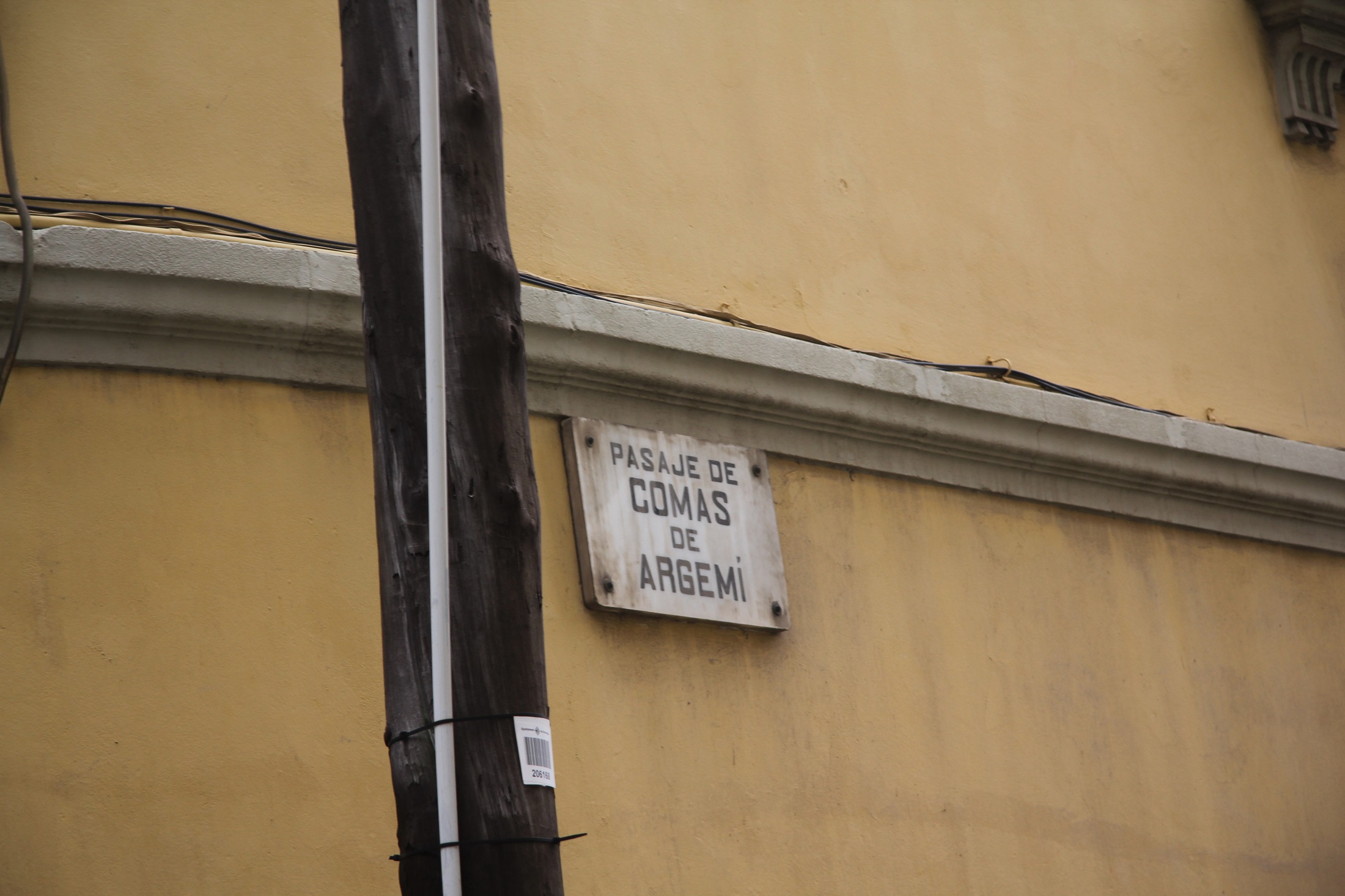 El sitio, recóndito y privado, como la aledaña placeta de la Marquesa de Caldes de Montbui, reservada a los vecinos, tiene una placa para identificarlo: pasaje, en castellano, de Comas de Argemí, y aquí tenemos un indicio muy lógico para escarbar un poco más y llegar a conocer mejor lo inaccesible.