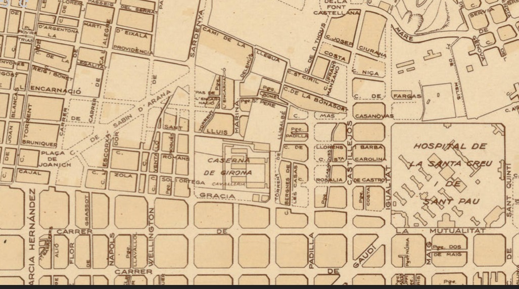 Aquesta revolució es completà amb dos pilars. El quarter de cavalleria de Girona, en construcció des de finals de Vuit-Cents, s’inaugurà el 1921 al carrer Lepant. Al seu voltant es teixí el més important fruit de les cooperatives militars, amb una illa de boniques cases amb jardí, de les quals només en sobreviu una al 378 de travessera de Gràcia. La presència de l’exèrcit ajuda a entendre el perquè de tant nomenclàtor proper amb al·lusions a batalles o proeses bèl·liques, de Castillejos a Padilla fins arribar a l’omnipresent Lepant o Dos de Maig.