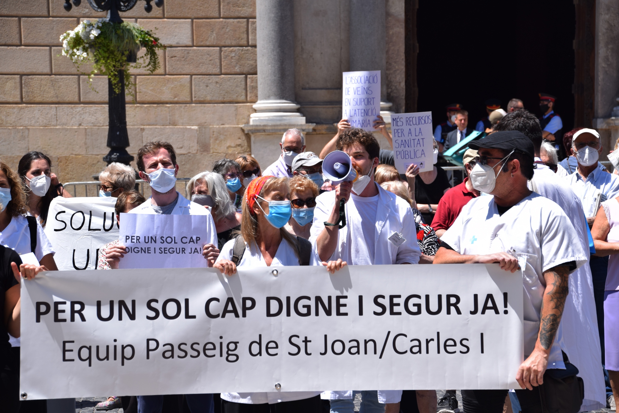 Per aquests motius el passat 22 de juny al migdia professionals de diversos centres d’atenció primària de Barcelona es van concentrar a la Plaça de Sant Jaume sota crits de “volem caps dignes!” i “atenció primària de qualitat!”. La manifestació va ser convocada per la Plataforma CAP Gòtic Nou Ja!, la Plataforma Nou CAP Passeig de Sant Joan/Carles I Ja!, la Plataforma CAP Raval Nord Digne!, el CAP Drassanes, el CAP Casc Antic, el CAP Ramon Turró, el CAP Besòs i el CAP La Pau. “No tenir una planificació adequada per l’atenció primària suposa un risc per la salut de la població i això ni ara ni mai no ho podem permetre”, van reivindicar els CAPs participants a través de la lectura d’un manifest conjunt.