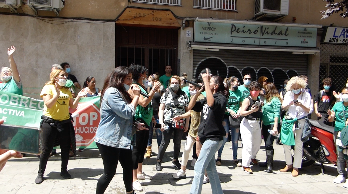 El jueves día 18 la Plataforma de Afectados por la Hipoteca convocó por primera vez a detener un desahucio desde la declaración de estado de alarma por la pandemia de la Covid-19, en el barrio de Collblanc en L’Hospitalet. Avanzando por la calle Mas se oía mucho alboroto -micros, megáfonos y canciones-, pero esto es habitual en las acciones de la PAH. La sorpresa fue llegar a la esquina de la calle Llobregat, donde viven Liliana y su familia, y ver la multitud.