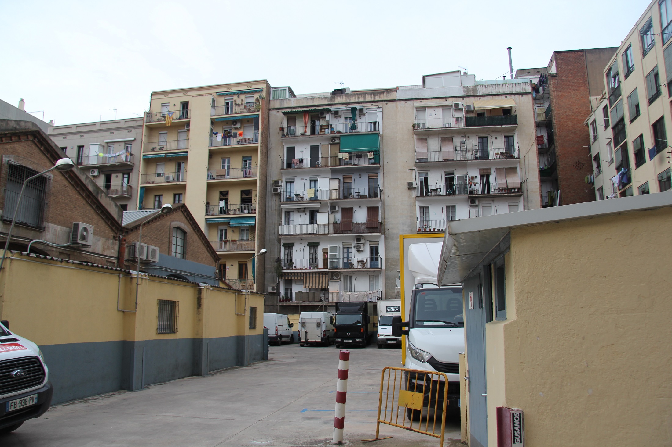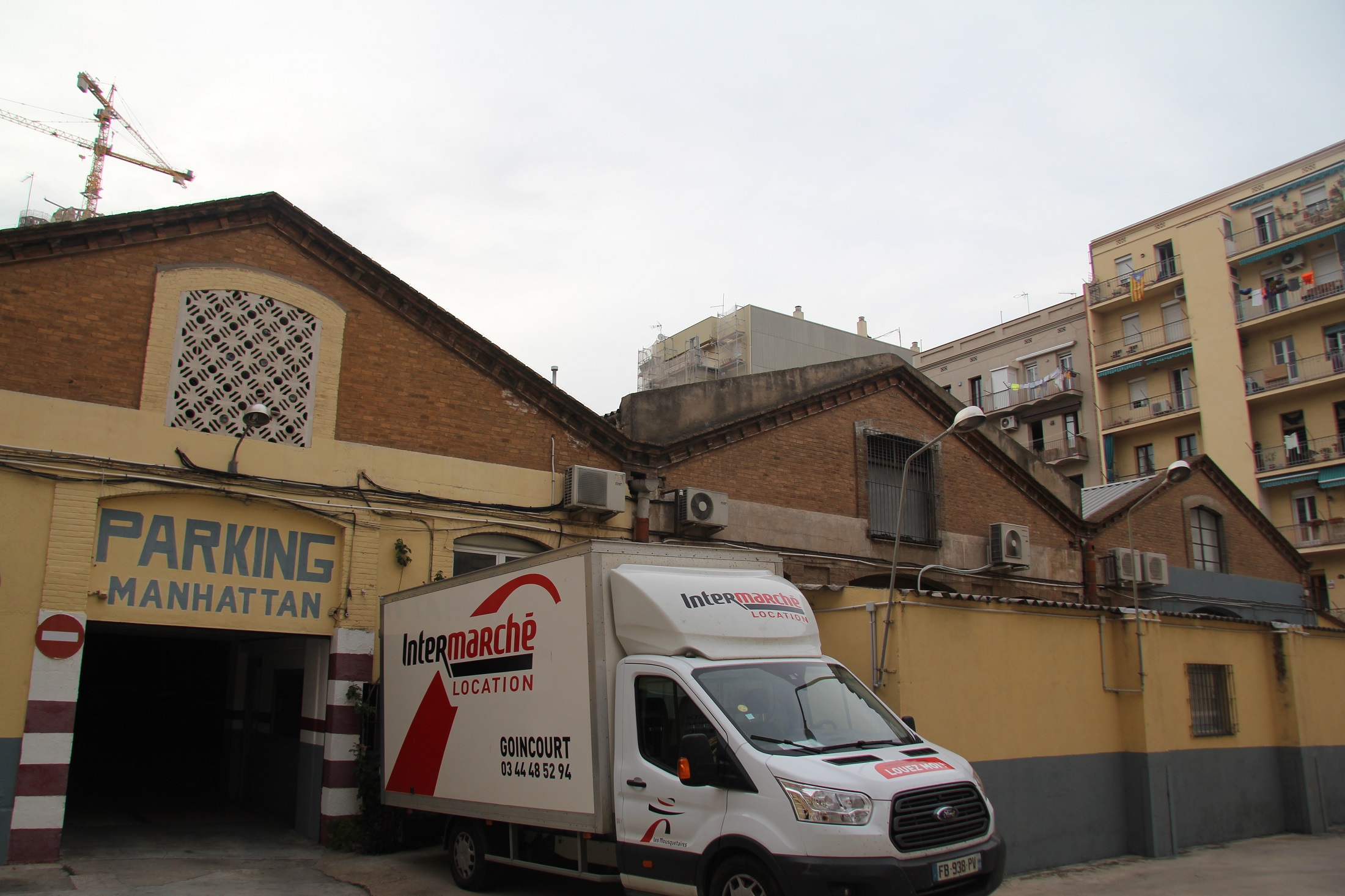 ¿Bingo? Sí, sin duda, aunque aquí está la génesis de mis pesquisas. Durante una tarde de domingo de la fase 1 quedé con una amiga con la intención, cada uno liga como puede, de mostrarle la ruta de la antigua carretera de Horta. Quedamos en el metro de Verdaguer, tiramos por la Diagonal y en Aragón 425 transgredimos la prohibición y accedimos al recinto interior, donde admiramos las naves del Parking Manhattan.