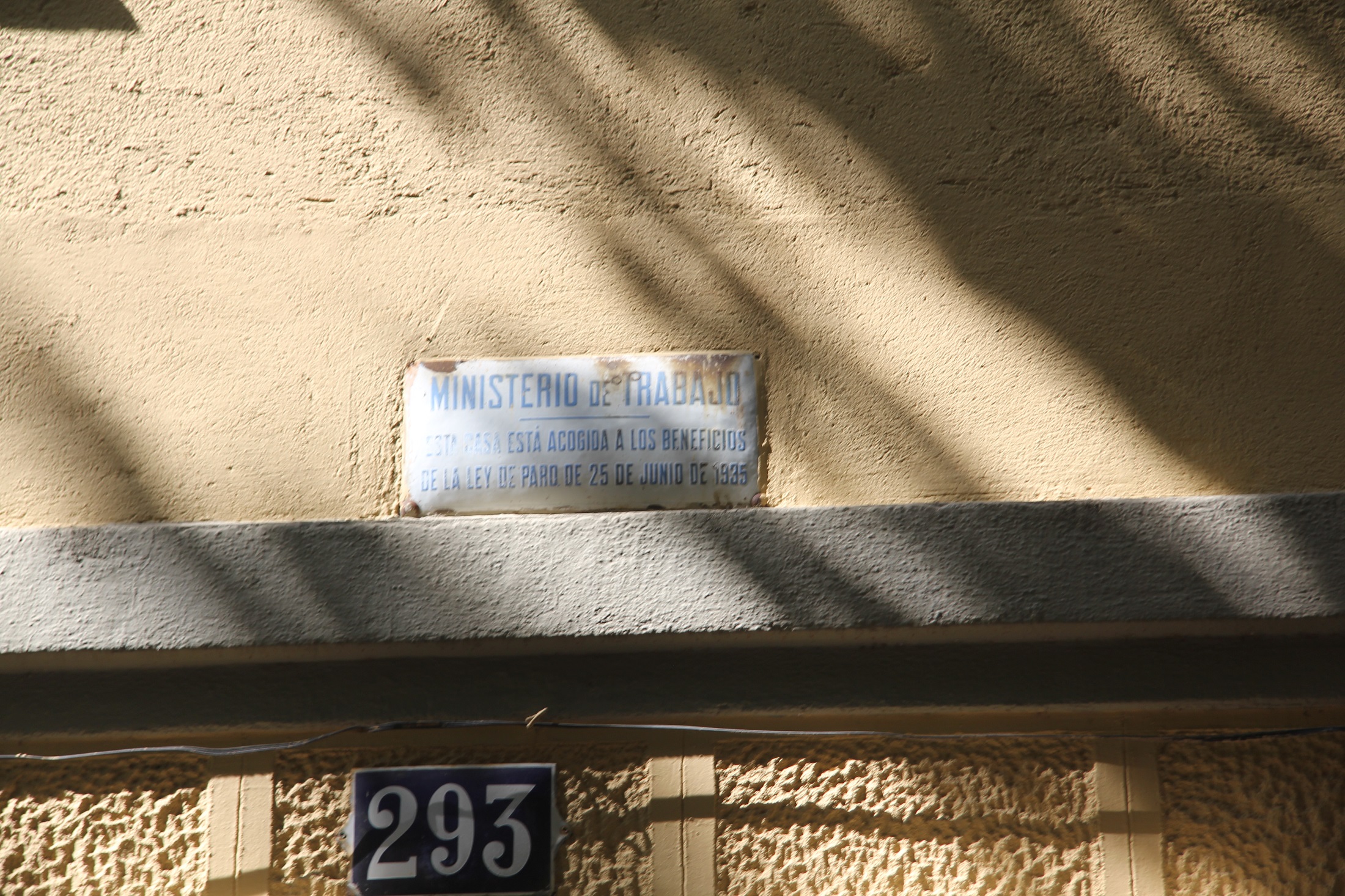 Estas cuatrocientas seis viviendas aún respiran un aire noucentista y el ideal de la ciudad jardín inglesa tan amado durante el período legislativo de las casas baratas y la Segunda República. Franco, o sus asesores, lo reformularon, y para comprobarlo baste observar cómo las placas de la Ley Salmón de 1935, de alquiler social para los más desfavorecidos, se mantuvieron en sus casas. En Barcelona subsisten muchas y junto a una amiga vamos localizándolas. No soltaré más prenda sobre la cuestión. Algunas, por el cretinismo de esta administración, han desaparecido. Otras, por el poco apego a mirar hacia arriba, están a la vista de todos para deleite de pocos.
