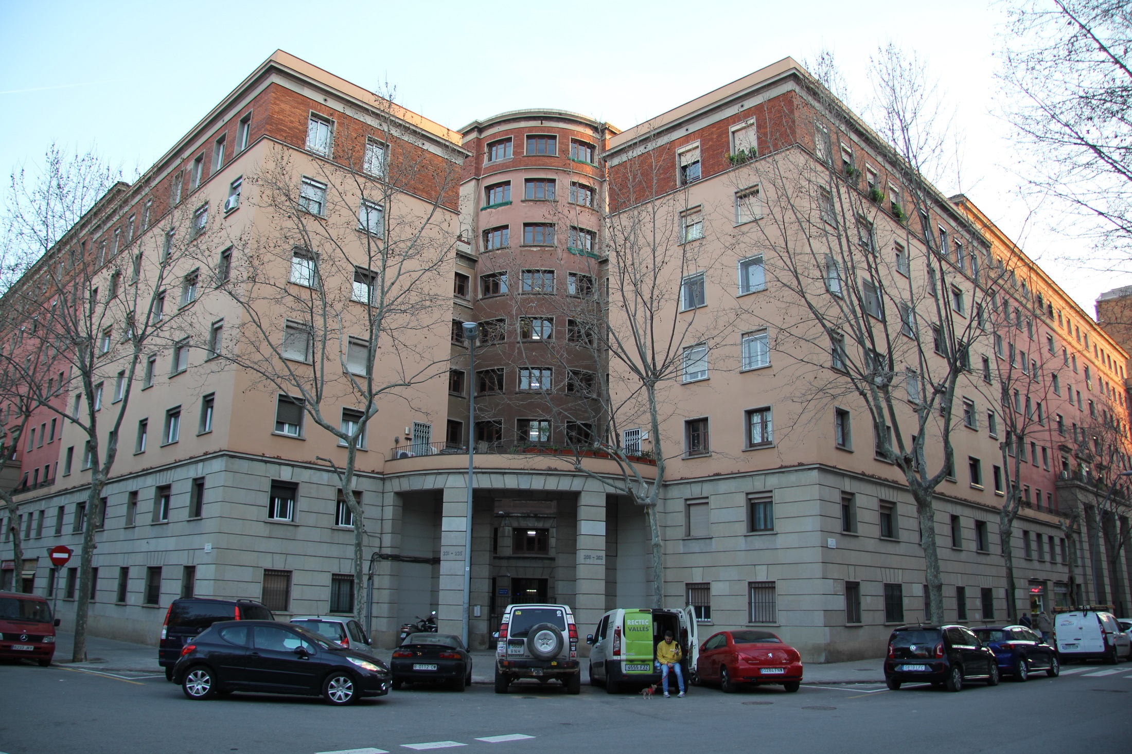 Poco antes de ese marzo nefasto me propuse conocer a fondo la Verneda, paseándola con amigos y alumnos. Me admiraban muchísimo dos bloques de pisos muy homogéneos de los primeros años cincuenta. El primero se conoce como Edificio Agricultura, es obra de Manuel Cases Lamolla y ocupa la entera manzana comprendida entre Agricultura, Treball, Andrade y Concili de Trento. Tiene más de 400 pisos, un gran patio interior y su estilo arquitectónico asemeja al del fascismo italiano, y cuando circulo por sus inmediaciones acude a mi mente la película Una giornata particolare, de Ettore Scola, con esa insensata concentración humana, un pueblo hacinado en la modernidad de formas y materiales, tristes derivas de regímenes totalitarios.