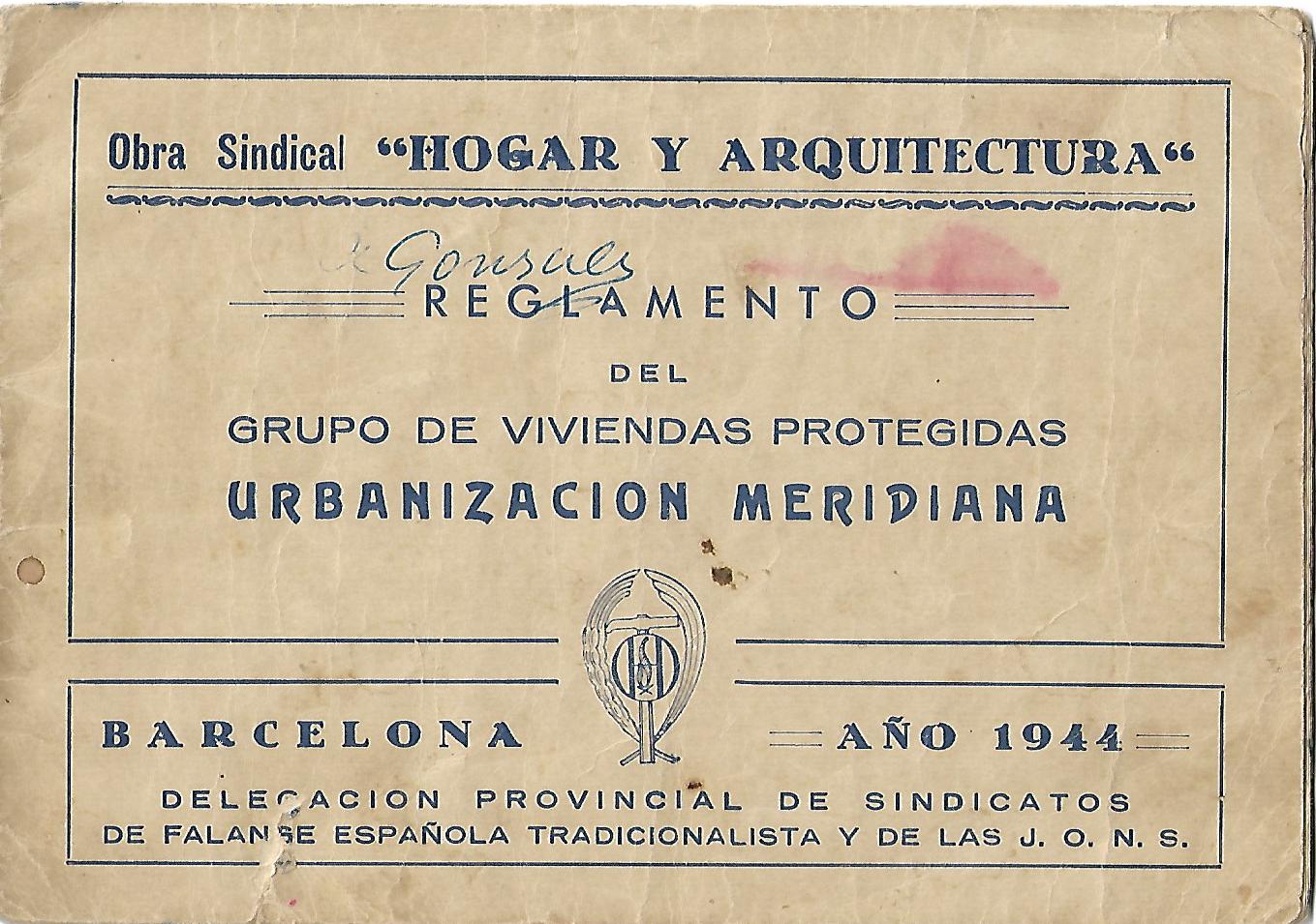 Perdoneu l’incís. 26 de gener. 18 de juliol, jornada per a inaugurar el 1944 els primers blocs de la Urbanización Meridiana, primera pedra del triomfalisme edilici dels nous amos, des d’aquesta visió caritatius per a recuperar polítiques de vivenda adaptades als nous temps, això sí, aquí no em desagrada repetir-me, encara amb premisses antigues de cel visible i immobles baixets, sense la verticalitat per bandera, paraula aleshores emprada per a destacar vistoses penjades amb els colors nacionals entre visques a Espanya i, com no, al Caudillo en presència del governador civil Correa Veglison, el delegat provincial Ribó Vaqué, el secretari provincial Besalduch, els procuradors a Cortes Miró Caballé i García Ribes, i per últim el rector de Crist Rei de la Sagrera, Eusebio Figueras. Aquesta cirereta situa tota la urbanització en aquesta òrbita espacial, separant el temple de la nova obra civil mitjançant la incipient Meridiana.