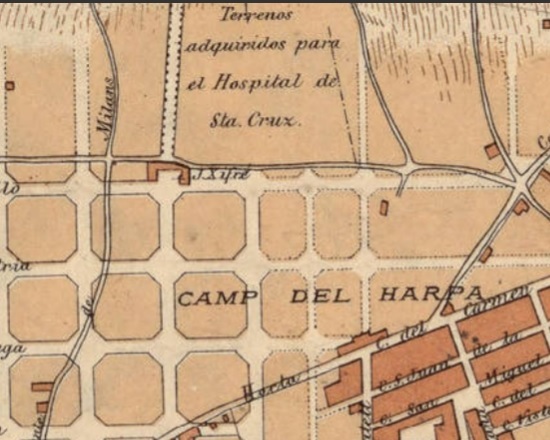 Aquesta fascinant història mereixerà un altre fascicle de les nostres Barcelones, si bé tampoc podem deixar-la així per la seva transcendència. El vell hospital no podia copsar les prioritats mèdiques d’aquella urbs finisecular, pel nombre de llits i el vetust tarannà de les seves habitacions. Entre 1902 i 1929 Lluís Domènech i Montaner habilità un cabal prodigi modernista, i per a reeixir-hi els propietaris dels voltants, d’Utset a Casamitjana, de Casanovas a Xifré, es desprengueren gustosos de moltes de les seves tinences, amplíssimes, fins a superar la configuració present del recinte, doncs segons altres fitxes patrimonials arribaven, com a mínim, fins al carrer Amèrica del Guinardó.