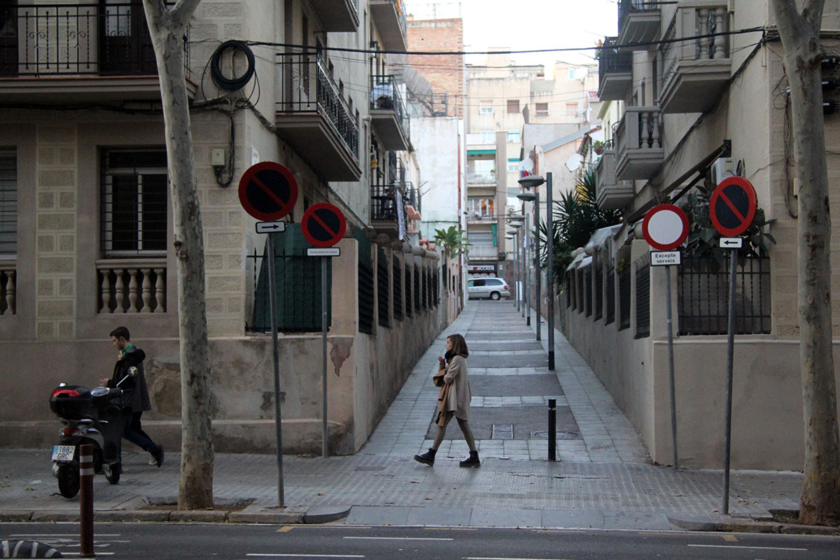 En esta escritura de las Barcelonas reconozco mi apego a lo pequeño, tanto por interés como por alimentar mis jornadas. En muchas ocasiones me encanta, os llevaré conmigo, ir a una de las cimas del carrer de Cartagena para observar su descenso infinito, su tiralíneas fronterizo.