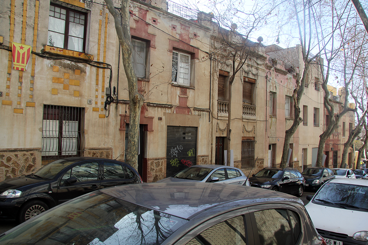Eso era en la niñez. En la actualidad situar la calle de la Torre Vélez nos conduce a dos factores recurrentes en esta serie. El primero es dar en su tramo junto a Sant Quintí con una hilera de casitas de las cooperativas militares, la segunda si las contamos desde la travessera de Gràcia. Aquí, con su jardincito posterior, son una punta de lanza, escondiéndonos otras gemelas, más coloridas, en un pasaje sucesivo, el de Mariano García Cambra, promotor de esta iniciativa para la soldadesca junto a Vicente Costa Blasco, quien da nombre al último grupo.