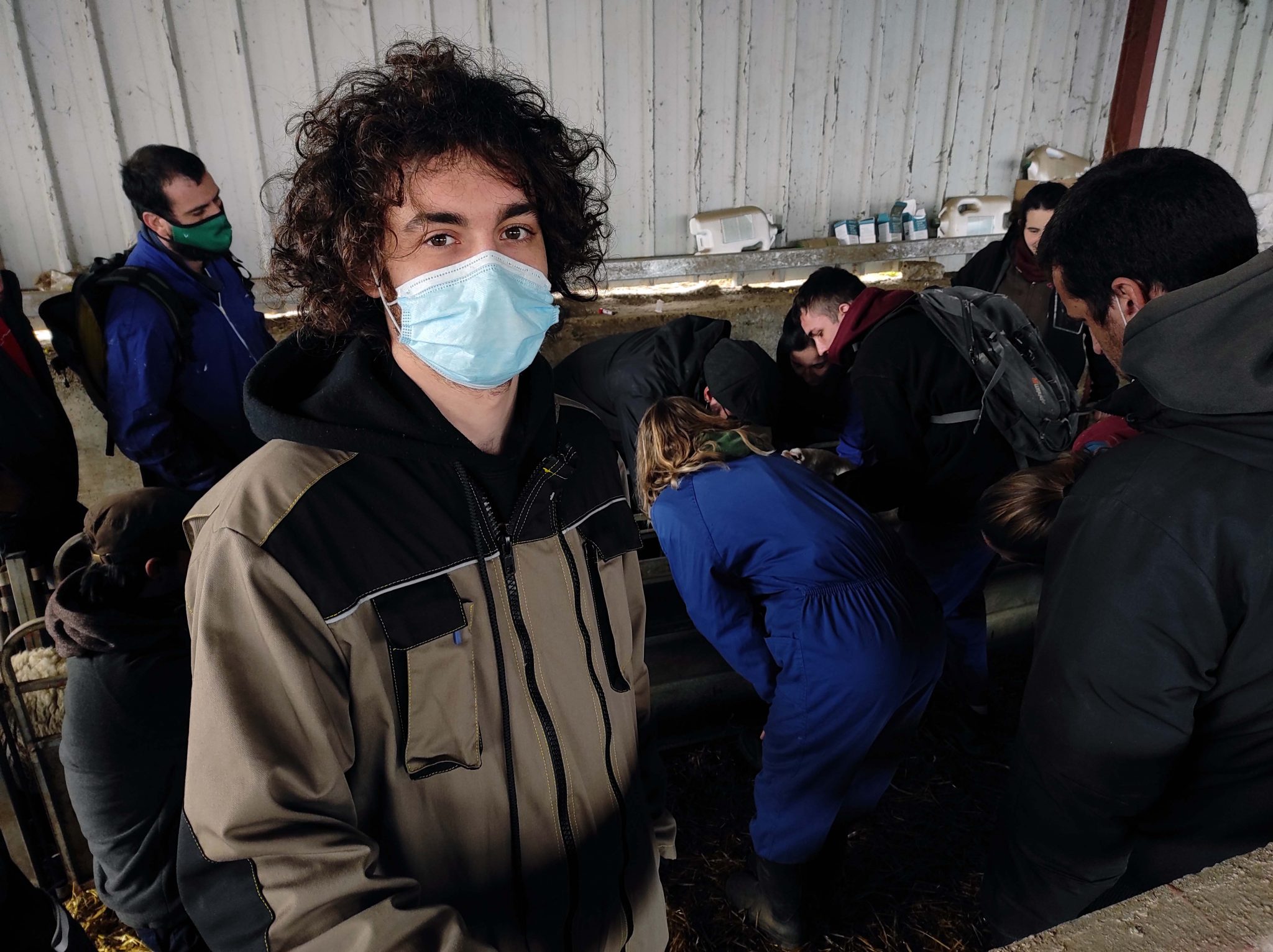 Cuando retorne a su Normandía natal, Imanol Ricart, otro alumno de la Escola de Pastors, de 24 años, quiere poner en marcha un proyecto con amigos de allí. “Están muy interesados en hacer un pequeño proyecto de finca donde se mezclarían huertos de permacultura, una pequeña producción de miel y un pequeño rebaño, seguramente de cabras, para hacer una pequeña producción”. Su abuelo materno nació en Barcelona y cuando él fue a París a estudiar Filología Hispánica, levantaba castillos con una colla castellera en la capital francesa. “Desde los 15 años no he parado de pensar en hacer de pastor, y estar en contacto con el campo, Porque mis padres viven en el campo”, explica. Su madre es profesora en una escuela agraria en Francia y él quería hacer estos estudios en Normandía, pero no hay formación como pastores. Fue por Internet que leyó que España tenía escuelas directamente dedicadas a hacer de pastor y le interesó. “Además, con Catalunya siento mucha conexión porque es parte de mi cultura. Me interesaba mucho la filosofía de la Escola de Pastors de Catalunya, su dimensión cultural, el territorio pirenaico y el trabajo”, dice, en un perfecto catalán, mientras asiste con el grupo a la sesión con la veterinaria en la granja de Sant Joan de Vinyafrescal.