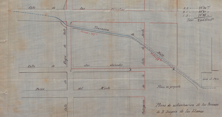 Joaquín de las Llanas se hizo con ambas e inauguró el habitual proceso de urbanización, centrándose en el tramo de su finca adyacente a Gràcia. De este modo su plan comportaba la ampliación del carrer de la Salut, el passeig de la Font Castellana, hoy en día Verge de Montserrat, passeig d’Amunt, carrer de Sant Salvador, Camèlies, Martí y Providència.