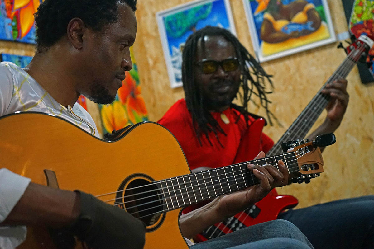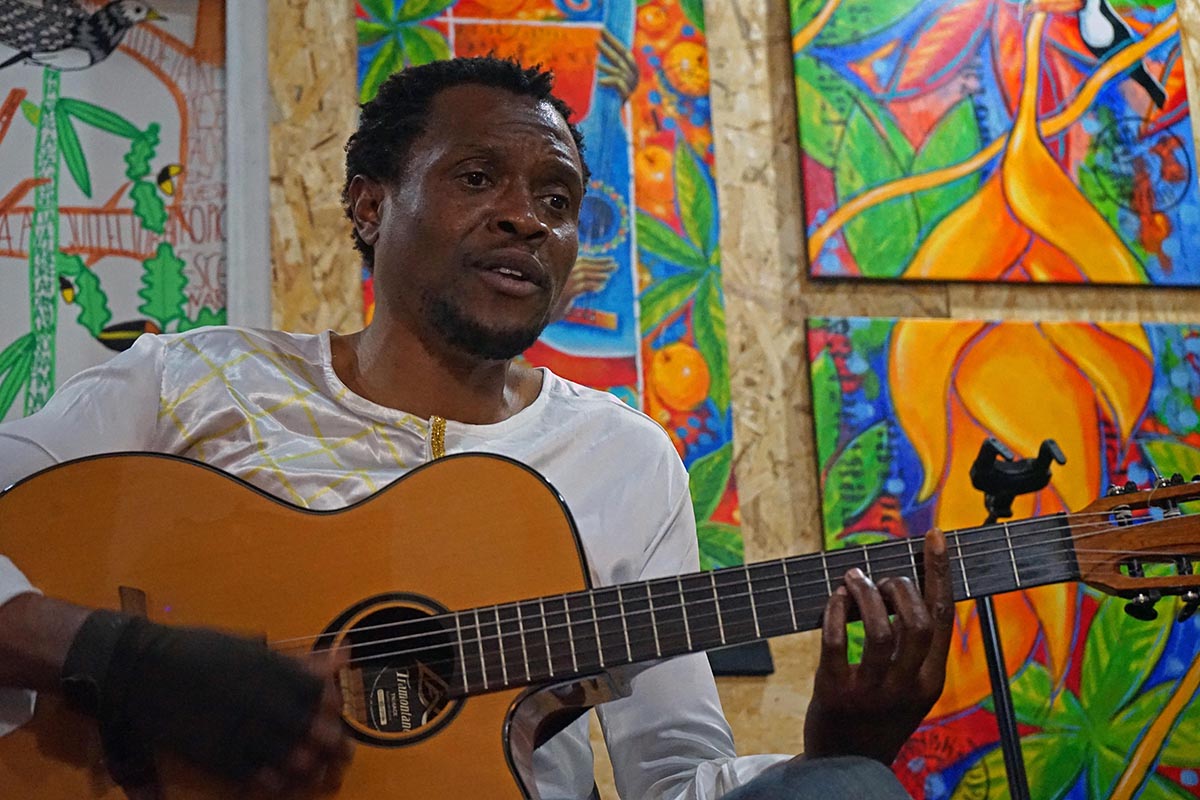 Érik – En nuestra juventud, cuando empezamos a tocar música, estábamos inspirados en la vida local, en la manera de ser de nuestro pueblo, en los ancianos. De niños aprendimos las cosas que existen en nuestro hogar, la forma de vivir, de cantar. Yo quería transmitir la manera de entender el respeto, los valores, ciertos ritos y danzas, las relaciones con los padres y la familia, con la naturaleza y de la forma que hablamos de Dios, quien es más grande que la religión. Amaba la música, mas no sabía que sería músico. Mi padre quería que fuese médico o abogado. Pero empecé a cantar en mi tierra natal, en Camerún. Yo diría que no es exactamente música tradicional. Si los occidentales van a las regiones donde las personas tocan los tambores desde hace miles de años y lo registran, lo pueden transformar en música moderna con las tecnologías. La música es la pulsión, y la que hacemos nosotros es la música primaria.
