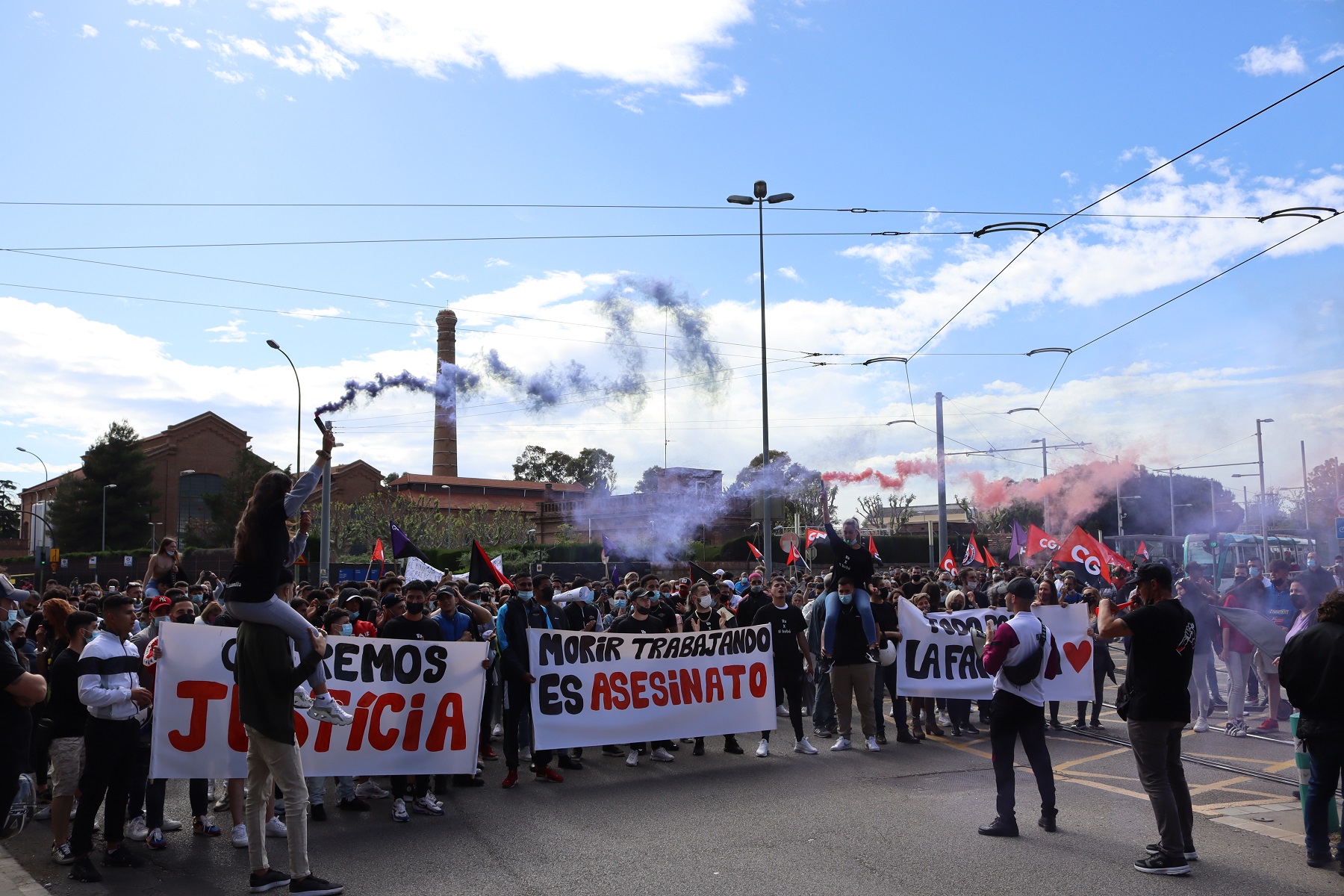 La manifestación ha ido desde las puertas de la empresa hasta el Ajuntament. La mayoría de cánticos han sido de apoyo a la familia, para señalar a la empresa como asesina y en contra del modelo de trabajo actual: “no son empresarios son terroristas” o “morir trabajando es asesinato”, son algunos ejemplos.