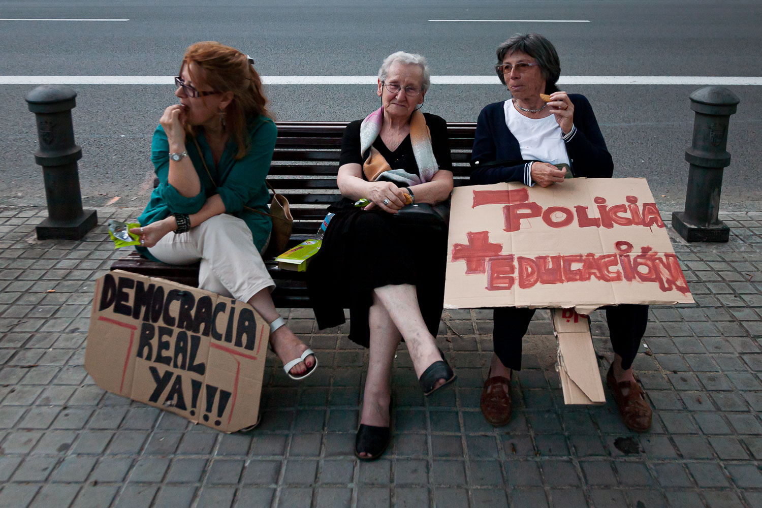 A sus 90 años, Fernando García fue okupa durante siete meses. Nacido en un pueblo de Jaén, ocupó durante 222 noches y 223 días su centro de salud, el CAP de Rambla Marina, para evitar el cierre. No estaba solo, le acompañaban varios centenares de vecinos y vecinas de Bellvitge, un barrio del extrarradio de Barcelona. En aquel entonces retraté a ochenta de sus protagonistas, los yayoflautas, me fascinó su determinación, su cohesión y su dignidad hasta el final. Las plazas quincemayistas me parecían fugaces resurrecciones del asociacionismo que construyó los barrios de Barcelona a finales del siglo XX.