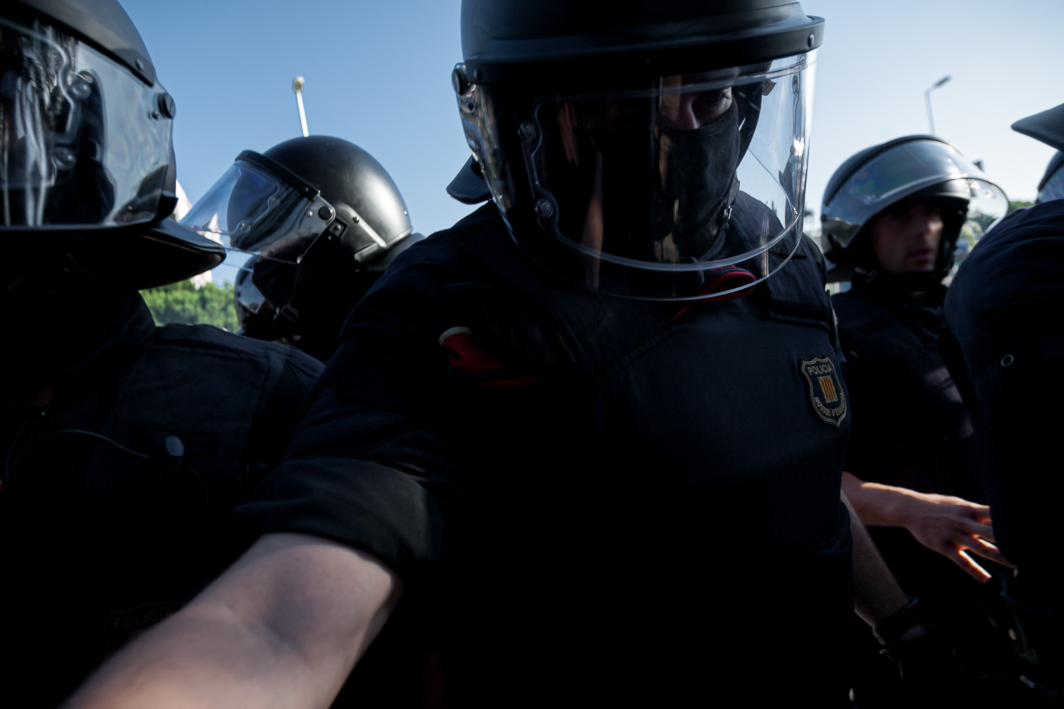 La rodilla en la cabeza y la mano sosteniendo las armas incautadas: lápices y bolígrafos. Cuando el 15M rodeó el parque donde está el Parlament, no vi cristales rotos ni contenedores ardiendo. Sentí mucha tensión, escuché insultos a los políticos que entraron andando al Parlament y vi cargas policiales. Alguien le pintó el abrigo a una diputada y lanzó cáscaras de plátano. Resultado: el pleno empezó con 15 minutos de retraso.