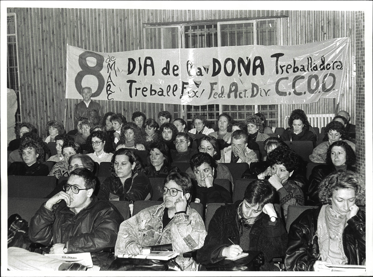 Desde comienzos de la industrialización se puso de relieve la importancia de la organización y la participación de mujeres trabajadoras en la mejora de las condiciones de trabajo. Esta participación siempre estuvo y está llena de dificultades, las empresas estaban más interesadas en tener trabajadoras – mujeres y niñas – desorganizadas y poco proclives a la reivindicación, pero también había obstáculos por parte de los trabajadores que no querían compartir ni los puestos de trabajo ni el poder de las organizaciones que consideraban terreno masculino. La historia del movimiento obrero está llena de ejemplos de luchas de la participación de las obreras, hay numerosas publicaciones de autores sobre luchas de mujeres trabajadoras en Catalunya entre ellas Mary Nash y M. Carmen García Nieto (1) y Conxa Llinàs (2). En la transición democrática y tras la larga agonía del trabajo de las mujeres que se dio durante el franquismo con todo tipo de dificultades para el acceso al mercado de trabajo, al mismo tiempo que surgen organizaciones obreras, primero en la clandestinidad y posteriormente en la legalización, la organización y las luchas obreras ya no se realizan sin las mujeres, algunas directamente desde las empresas, pero otros desde fuera apoyando las luchas obreras que se daban en sectores masculinizados, muchas veces de las parejas o hijos, y que formaban parte del movimiento ciudadano, pero que fueron clave para su victoria. La participación desde el mundo del trabajo reglado, no era la única fuente de trabajo de las mujeres, el trabajo doméstico y de cuidados, que se hacía desde los hogares, acompañando muchas veces de otros trabajos informales, sin derechos, que se tenían que hacer para sacar adelante una familia, formaba parte de las multiples ocupaciones de las mujeres.