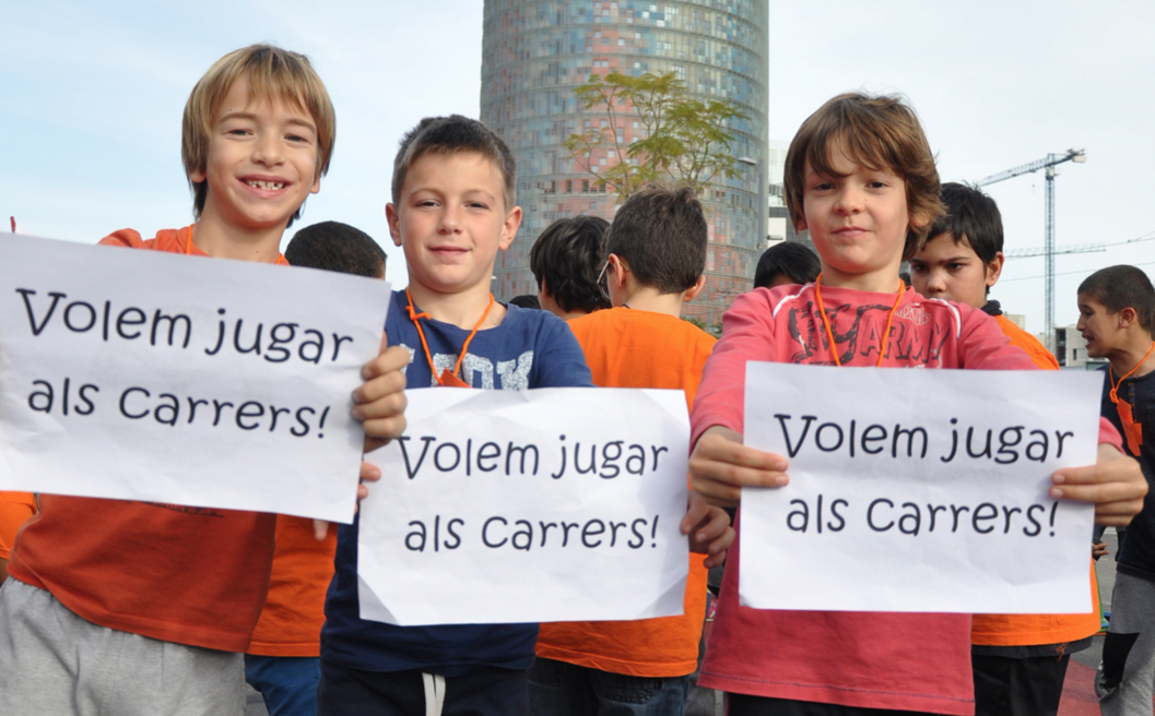 Las ciudades han sido pensadas y organizadas para dar respuesta a las necesidades adultas, y eso no se cambia de la noche a la mañana, aunque hay más conciencia de mejorar las ciudades para dejar más espacio al juego y a la movilidad. Y es que la planificación actual no sólo es adultocéntrica, sino que está orientada a dar respuesta a la economía productiva y a las necesidades del transporte privado. Queriendo introducir mejoras de tráfico, lo que hemos hecho ha sido llenar las ciudades de coches y generar problemas derivados como la contaminación del aire o la acústica. Hemos llegado al punto que llegamos a concebir el espacio público como peligroso para los niños. El miedo y la necesidad de seguridad, que también son muy adultocéntricas, nos han hecho delimitar y poner vallas en las áreas de juego infantil para preservar la seguridad.