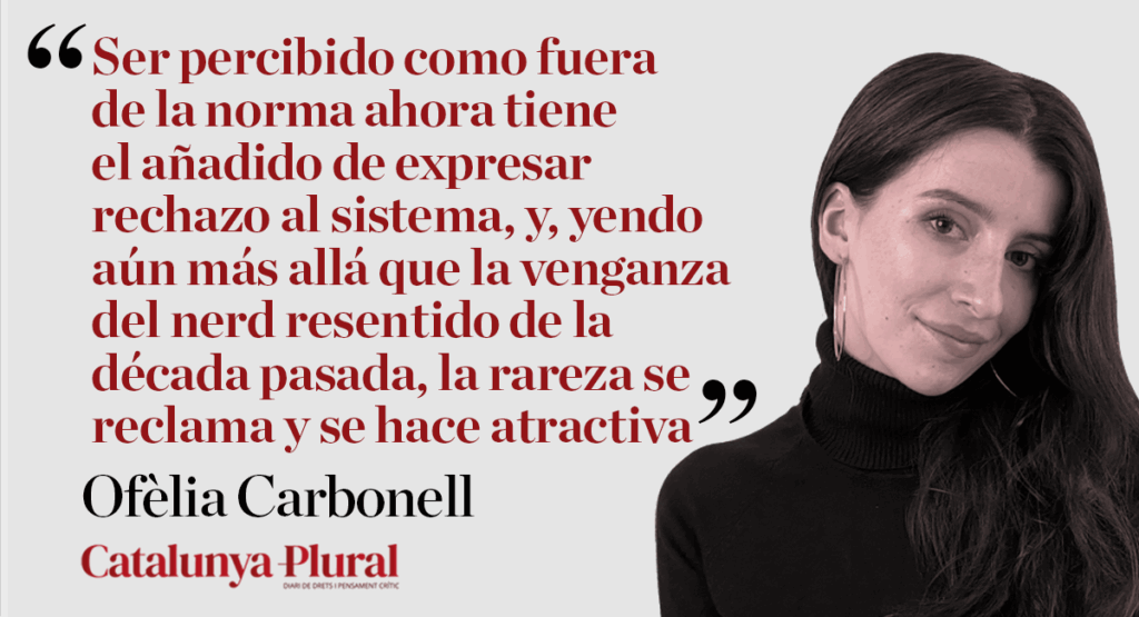 Es por ello que se están reclamando todas las estéticas de movimientos contestatarios anteriores, un poco por nostalgia y un poco para distinguirse bien visiblemente de todo aquello que no se quiere ser. Ser percibido como fuera de la norma ahora tiene el añadido de expresar rechazo al sistema, y, yendo aún más allá que la venganza del nerd resentido de la década pasada, la rareza se reclama y se hace atractiva. Por eso mismo se acaba haciendo estética de todo lo que te podría hacer “outsider”: accesorios de anime, detalles de antiguos grupos emo; imaginario de inspiración austeniana, eyeliner que emula el estilo de un videojuego, etc. Todo son pistas en el juego de auto-expresión de resignificar la estética y, tal vez, preparar las bases de un “alt-left”.