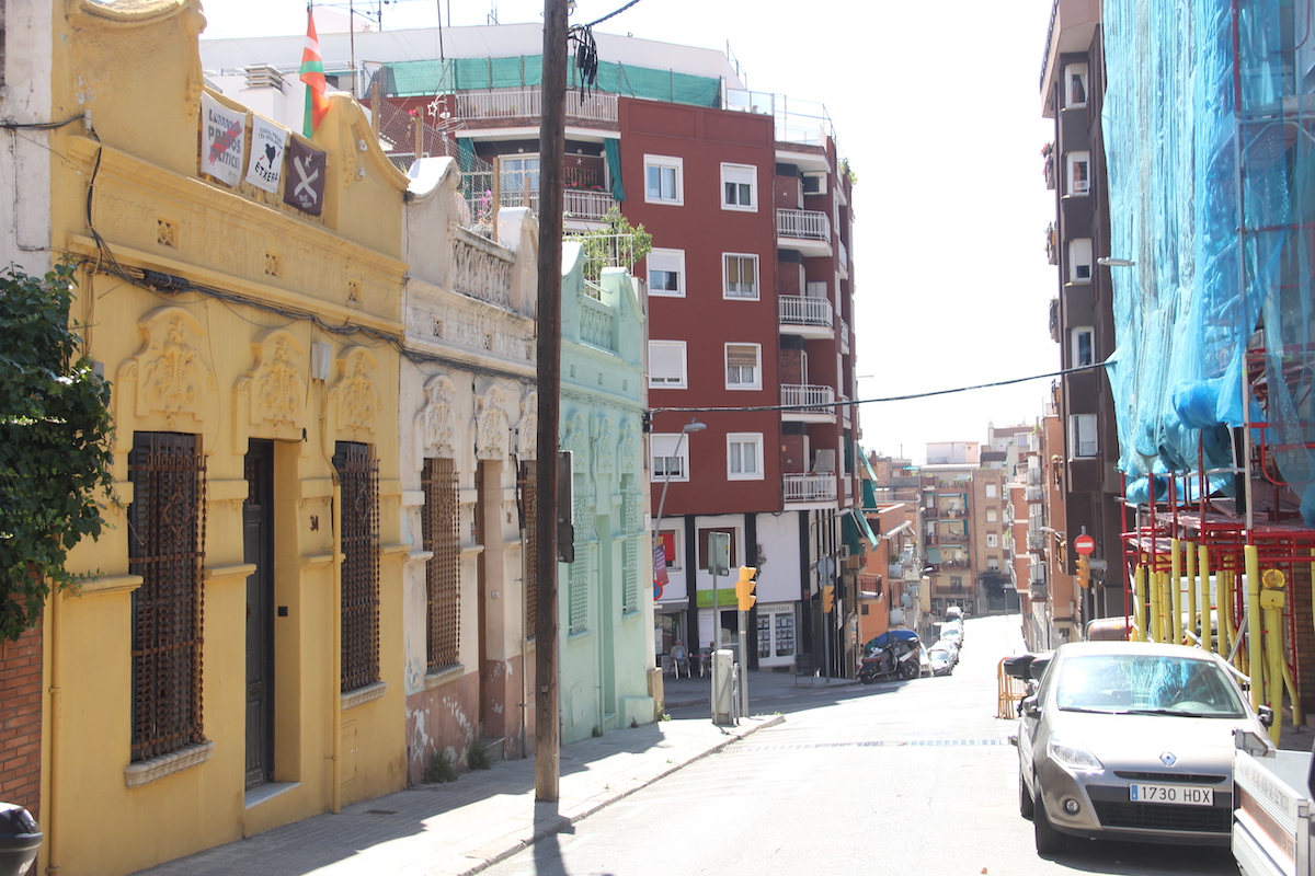 La mía es perpetua en esta calle. Su cima se halla al final de unas escaleras con casitas de planta y piso a su izquierda. Para quien quiera visitarlo recomiendo encarecidamente recrearse en las tres fincas casi adyacentes a Verge de Montserrat, ejemplo de Modernismo popular y con el engaño contemporáneo de sus tres colores para darles un toque inconfundible, por lo visto irrelevante para declararlas bien patrimonial o dar con su autor, inencontrable en mis investigaciones por el Arxiu Municipal.