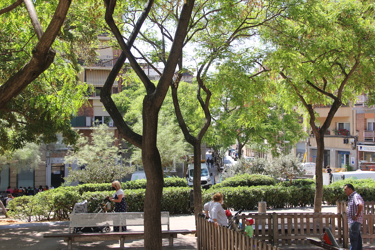 Hasta el momento, todo se andará, estas trillizas no confluyen. La última partía donde se entrecruzan las calles de Ercilla y Camil Oliveras, tranquilas y de continua curvatura, hermanas de zigzagueo y no tan rotundas en su vertiginosa pendiente si la comparamos con la de Llobet i Vall-Llosera, nuestro particular San Francisco sin Steve Mc Queen, donde la Guineu se deslizaba para mirar de soslayo la plaça Catalana, una rotonda demasiado poco ponderada y muestra del desastre para con la pequeña Historia barcelonesa. La podemos admirar desde hace más de una centuria; aun así estamos en 2021 nadie ha podido averiguar quién diseñó la fuente, surtida por una mina de agua, capada durante el Franquismo por aquello de hablar en cristiano y esencial al ser una una quíntuple lanzadera hacia Llobet i Vall-Llosera, Mascaró, Amílcar y en doble sentido hacia Verge de Montserrat, por donde volvía a pasar el torrente hasta coincidir con Varsovia y abrazar la frondosa plaça del Guinardó, penúltimo jalón antes de dominar el carrer d’Anna María Martinez, hasta abril de 2009 passatge de l’Agregació, en referencia a las anexiones barcelonesas de 1897, cuyo recuerdo se perpetua en la homónima calle, también con salida desde esta ágora desnivelada por los caprichos del arroyo.