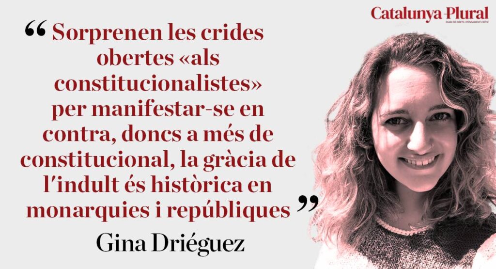 Així doncs, ens trobem que l’independentisme defensant l’Amnistia mentre el govern espanyol defensa l’indult (el perdó) i a l’altra banda les tres dretes nacionalistes espanyoles contràries a totes dues mesures. Sorprèn per altra banda les crides obertes “als constitucionalistes” per manifestar-se contra aquesta mesura, doncs a més a més de constitucional, la gràcia de l’indult és històrica ja sigui en règims monàrquics o republicans. La regla per l’establiment de l’exercici de la gràcia de l’indult es va establir el 18 de juliol de 1870, però com deia, històricament la institució de l’indult és tan antiga com al delicte i ja apareix en els pobles arcaics. En les societats primitives la justícia era la venjança, ja fos individual o familiar, a mesura que la societat va avançant aquesta venjança privada esdevé pública i la clemència imposa la gràcia que queda instituïda com el dret del perdó (HERRERO BERNABÉ, 2012).