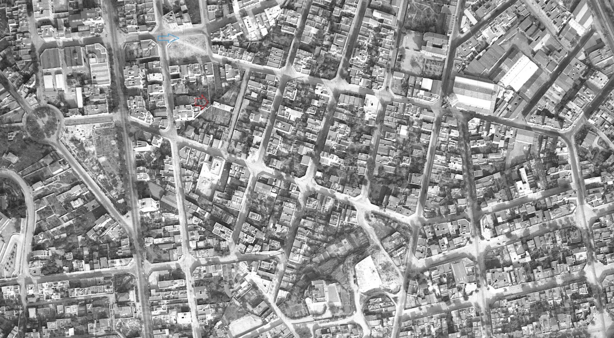 En una foto aérea de 1960 se aprecia un rectángulo irregular con mucha vegetación, sin aparente abundancia de bloques. La importancia del torrente en este perímetro se mide por cómo hasta en los años sesenta aún permanecía en el nomenclátor de la plaza, a la espera de decisiones, en marcha a nivel habitacional hacia finales de los años cuarenta, cuando hay breves de alquiler en los periódicos, y desde una perspectiva de transformarla a inicios de los cincuenta, cuando se trazan rasantes. Lo abrupto de sus altibajos es reconocible en la esquina con el carrer dels Periodistes, con un inmueble de fachada azul y balcones roídos, así como en la de la infinita Varsovia. Una puertecita en el escalafón más alto del ágora sugiere el transcurrir del cauce.