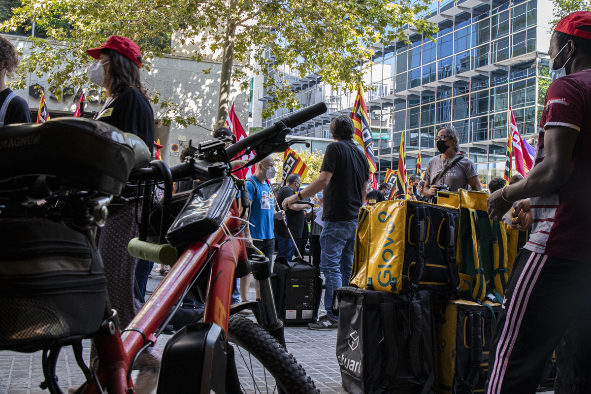 Durant la concentració, que ha reclamat principalment la laboralització dels seus treballadors, també s’han demanat condicions de treball dignes. Entre elles, coses tan bàsiques com poder accedir a lavabos, aixetes per rentar-se i agafar aigua, llocs per poder descansar, esperar les comandes o carregar les bateries de les bicicletes per poder fer el repartiment. Així ho ha explicat Carmen Juares, secretaria de Noves Realitats i Economia Social i Solidària de CCOO de Catalunya: “les reivindicacions que han traslladat no són cap luxe”, ha dit. I és que el fet que “Glovo posi o doni accés a lavabos als treballadors, que els hi deixin un espai per poder menjar, un espai on carregar les bicicletes que és l’eina amb la qual reparteixen les comandes de l’empresa o per carregar també el telèfon mòbil que és una altra eina necessària per treballar i tenir un lloc on rentar-se les mans en plena pandèmia és el més normal, però tot això són reivindicacions que l’empresa no escolta”.