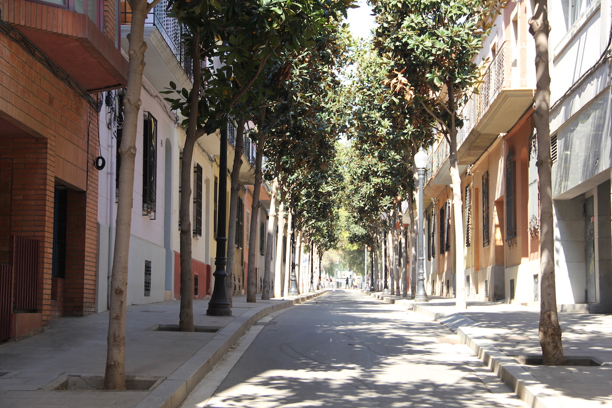 No he podido recabar informaciones sobre cómo era el ambiente de ese agujero negro en el mar de la paz. El passatge d’Artemis imanta a los ojos del paseante, como si fuera una isla pegada y no se hubiera dado cuenta de esa agresión. Muchos deberían adentrarse, practica tampoco muy efectuada por los residentes de sus estribaciones, partidarios de ir por lo sano y navegar por avenidas anchas y diáfanas, desperdiciándose un atajo a saborear con lentitud, y si hay prisa tampoco es un problema al acortar rutas. Su inicio en plaça de Maragall con Olesa, la designada por el franquismo para suceder al poeta Boscán, y su conclusión en Juan de Garay despiertan del sueño. Olesa conduce a la Meridiana con algún suave zigzagueo. Juan de Garay se configura en esos metros como un exabrupto, y si fuera un coche parecería estar a punto de sufrir un accidente, de nuevo por el avance del torrent de la Guineu. Ambas son normalidades con la heterodoxia de un terreno que no acata el tiralíneas oficial. En cambio, el passatge Artemis es limbo, algo arquetípico en muchos pasajes en el confín de una barriada a otra, como si fuera una puerta hacia otra dimensión, y por eso mismo acreedor de un estilo inimitable. No tiene nada y lo tiene todo. Tras travesarlo es recomendable mirar atrás para cerciorarse de su realidad o pellizcarse bien fuerte. Las magnolias son el señuelo para ingresar a un intervalo embrujado, comprensible al ser Artemis una alfombra roja entre una fase y otra del paisaje, de ahí su potencia cuando nos transporta, coronada por la homogeneidad de la belleza.