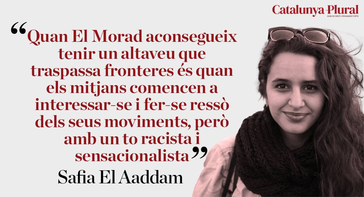 Quan El Morad aconsegueix tenir un altaveu que traspassa davanteres és quan els mitjans comencen a interessar-se i fer-se eco dels seus moviments, però amb un to racista i sensacionalista. Les dues vegades que mitjans importants s’han fet eco han estat per coses que res tenen a veure amb la seva trajectòria professional. Perquè li tenen por a El Morad i a les seves lletres. I això no és un fet aïllat, les persones racialitzades, des de ben primerenca edat en el col·legi, sempre ens hem d’esforçar el doble que les persones blanques perquè se’ns reconegui i/o premiï, si és que es fa.
