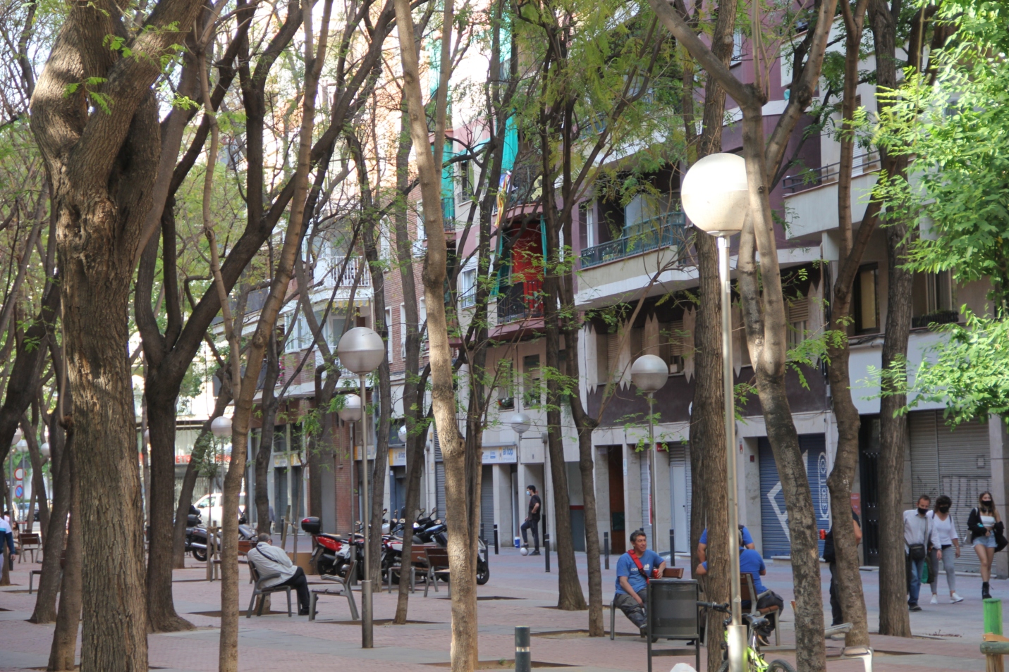Esto también es visible si los abandonamos y caminamos a su vera. Los vecinos denominaban a este tramo, comprendido entre Biscaia y Espronceda, como la rambla de la Guineu. Aún hoy en día, pese a todas las canalladas urbanísticas perpetradas por el Ayuntamiento, tiene aire a avenida de barrio, sólo rota por un trozo entrometido y paralelo a su recorrido: la calle de Palència.
